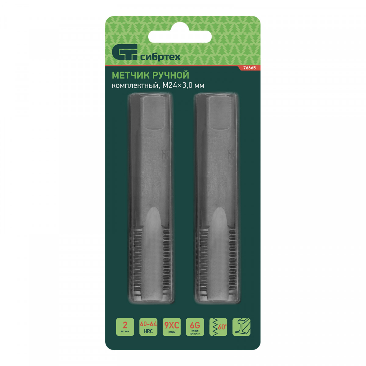 Метчик ручной М24 х 3 мм, комплект из 2 шт Сибртех