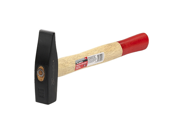 Молоток слесарный, 500 грамм, квадратный боек, деревянная ручка. Рабочая часть инструмента покрыта черным лаком и надежно зафиксирована на рукоятке при помощи клина и специального эпоксидного клея. Боек кованый и отфрезерованный. Проведена селективная закалка, обеспечивающая бойку прочность и препятствующая образованию расклепов на его гранях. Деревянная рукоятка c прямым волокном, без сучков, защищена от рассыхания бесцветным лаком.