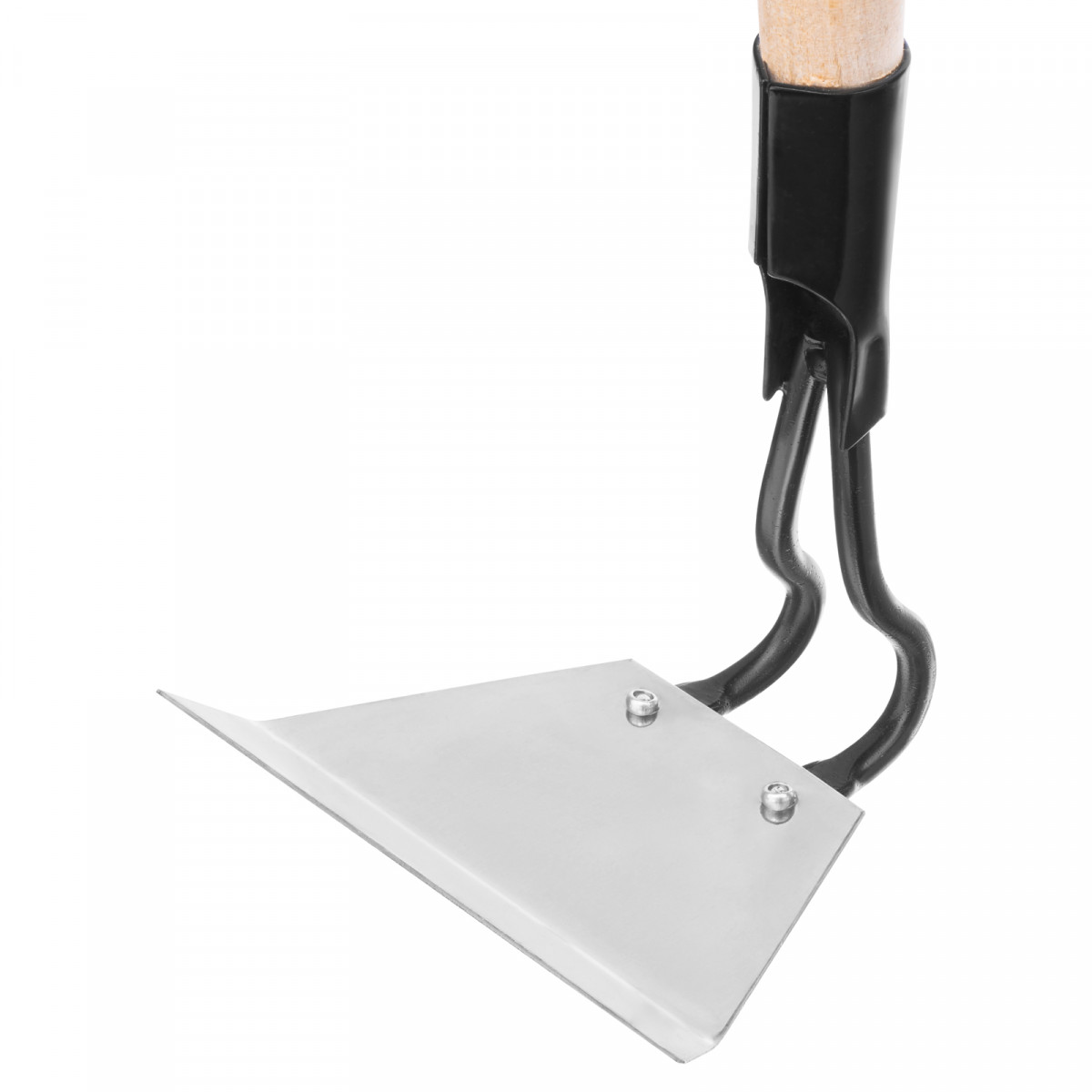 - Эффективная работа — режущая кромка остро заточена, поэтому мотыга легко срезает сорняки и рыхлит даже плотную почву.