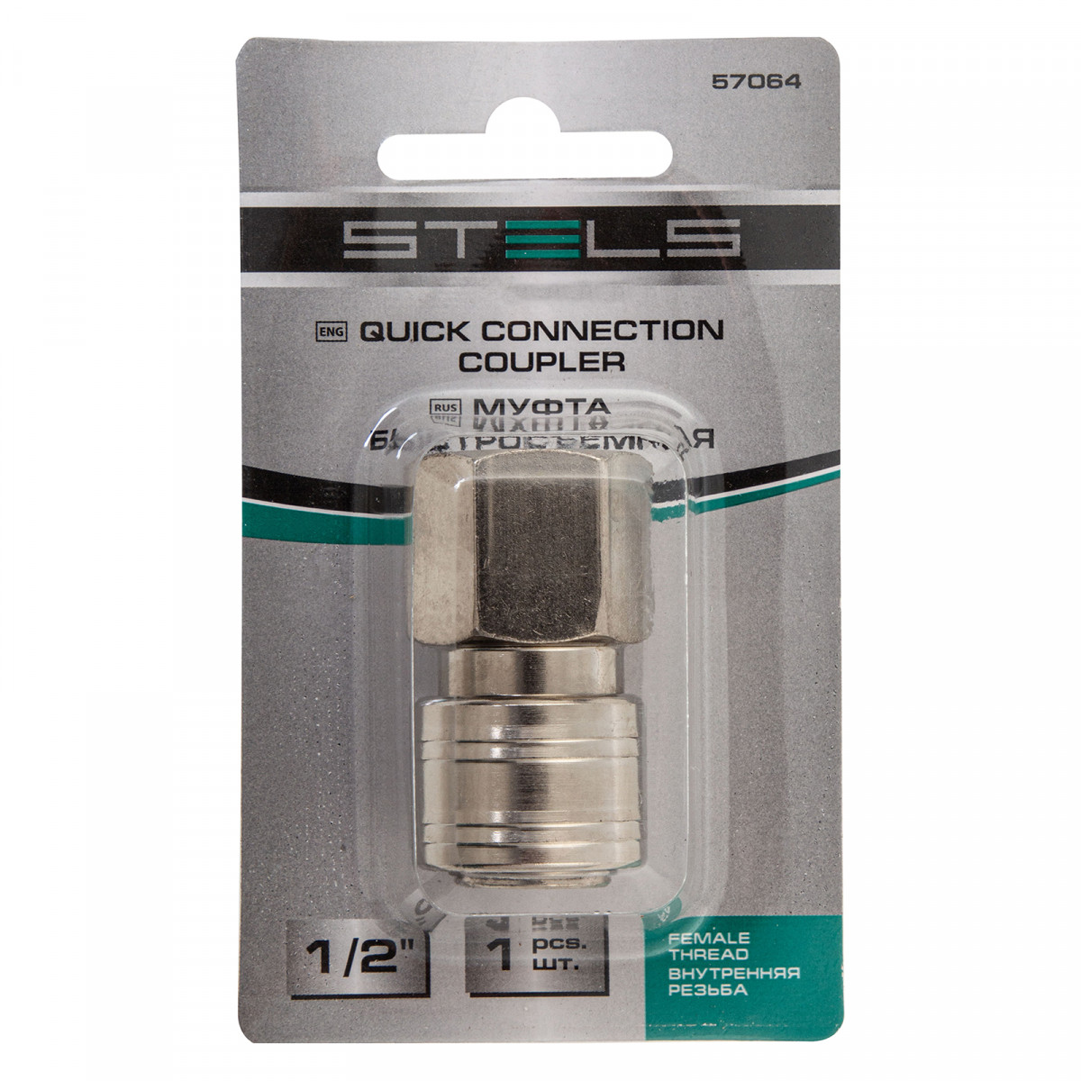 Муфта универсальная быстросъемная ("мама") внутренняя резьба 1/2, 1 шт, Stels