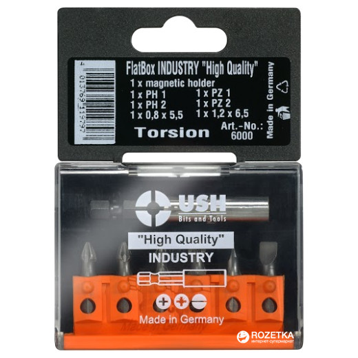 Набор бит USH FlatBox 7 шт Ph1, Ph2, Ph3, Pz1, Pz2, Pz3, магнитный держатель