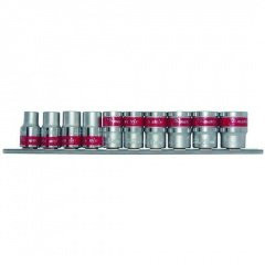 Набор MATRIX 13595 состоит из торцевых головок наиболее распространенных размеров, которые используются для монтажа/демонтажа крепежных изделий. Выполнены из качественной хром-ванадиевой стали и отполированы, что делает их устойчивыми к коррозии и износу. Твердость материала рабочих частей головок составляет 42 HRC, что соответствует требованиям ГОСТа. Изделия имеют двенадцатигранный рабочий профиль, обладают большим рабочим ресурсом и обеспечивают высокую эффективность завинчивания, поэтому их широко используют на производстве и в автосервисах. Поставляются на металлической планке под квадрат 3/8", упакованы в блистер.
