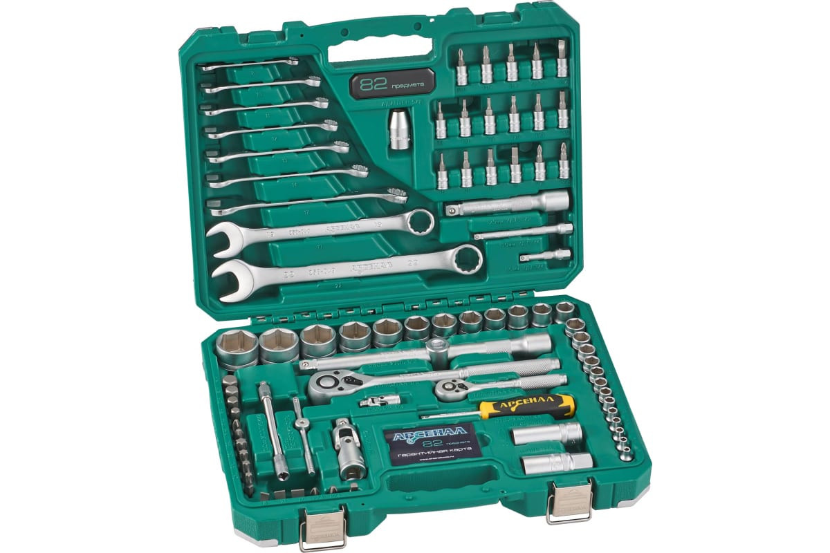 Набор инструментов имеет одну из самых популярных комплектаций ручного инструмента, представленных на российском рынке. Содержит оптимальный комплект головок, комбинированных ключей и бит. Сталь, из которой изготовлен инструмент, легирована хромом и ванадием с нанесением никелевого покрытия. Наборы инструментов Арсенал имеют пожизненную гарантию. Арсенал - всегда качественный инструмент и надежные кейсы.