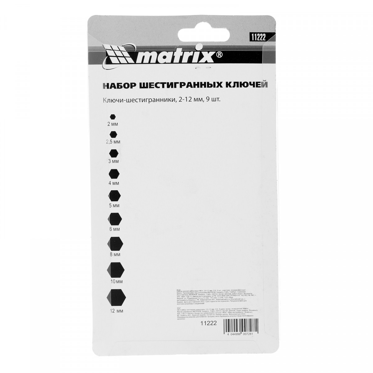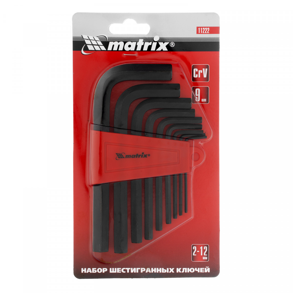 Набор ключей имбусовых HEX, 2.0-12 мм, CrV, 9 шт, оксидированные Matrix