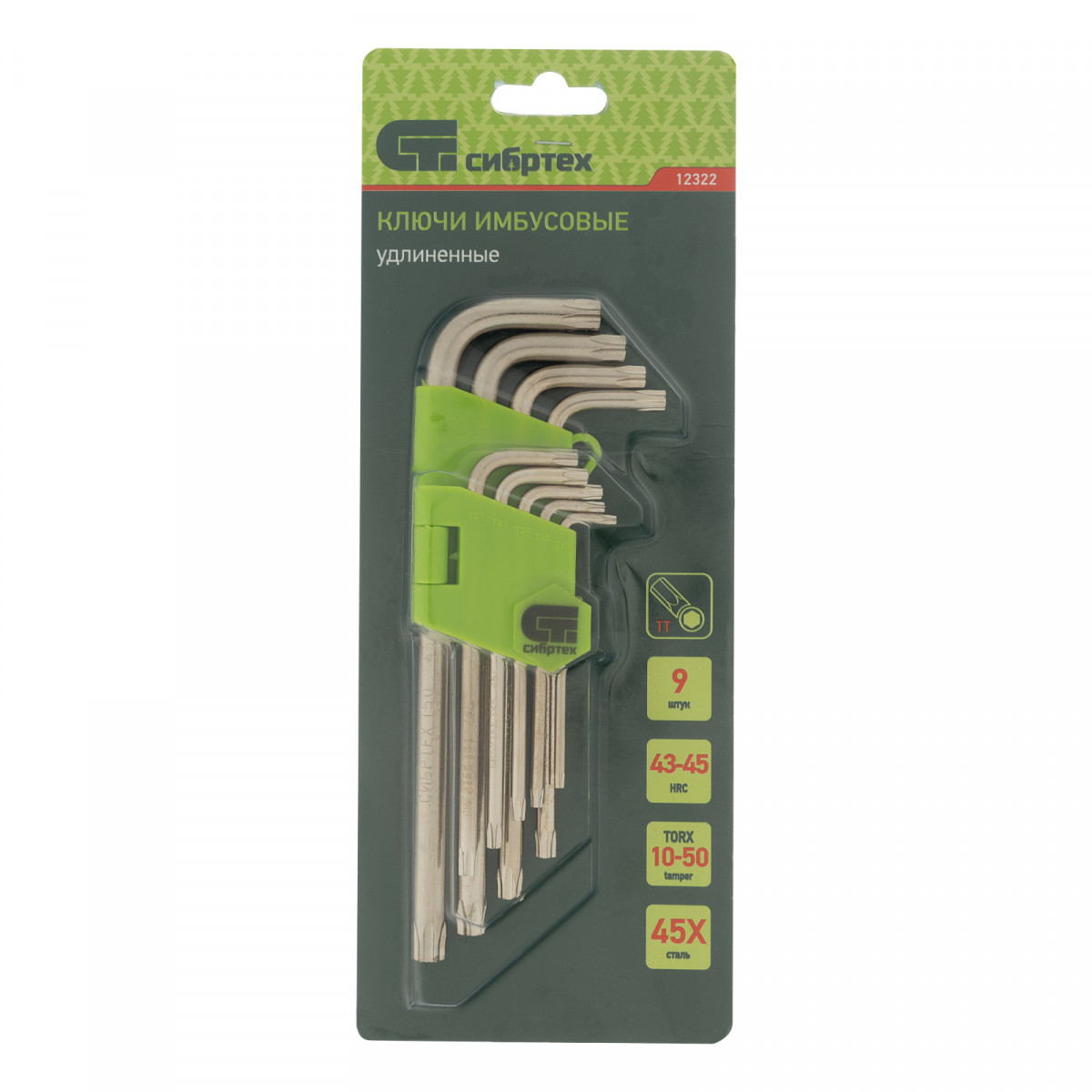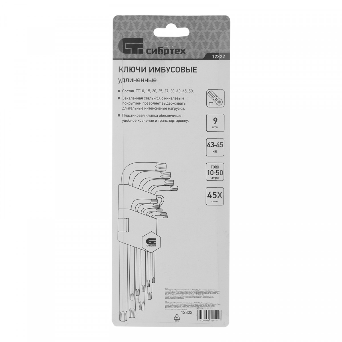 Набор ключей имбусовых Tamper-Torx , 9 шт: ТТ10-ТТ50.45x, закаленные, удлиненные, никель Сибртех