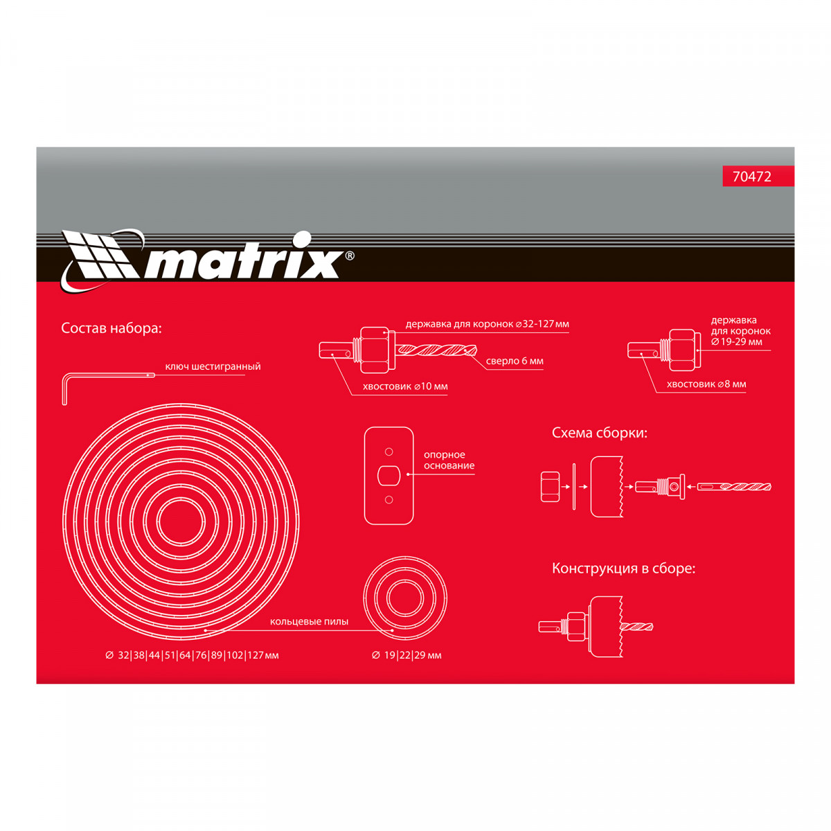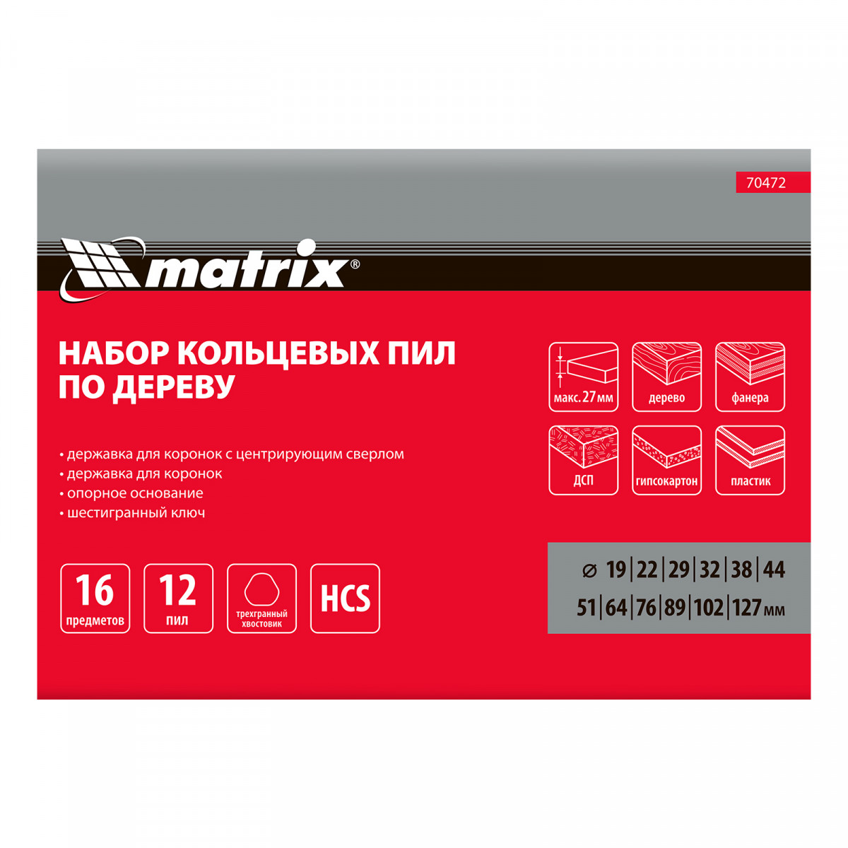 Набор кольцевых пил по дереву, 19-127 мм, 12 предметов Matrix