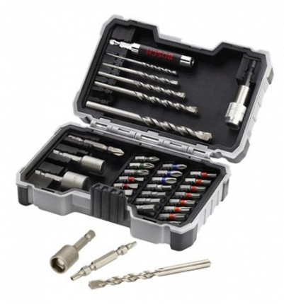 Набор бит и сверл Bosch 2607017326 применяется совместно с дрелями и шуруповёртами. Комплект включает оснастку для для монтажа/демонтажа различных крепежных элементов и сверления отверстий в бетоне, кирпичной кладке. Кейс для удобной транспортировки и хранения прилагается.