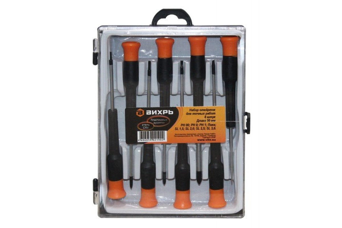 Набор отверток ВИХРЬ НО 6 для монтажа и демонтажа резьбовых соединений. Стержни отверток из хромованадиевой стали (CrV), полностью закалены и имеют хромоникелевое покрытие. Наконечники намагничены. Рукоятки эргономичной формы с отверстием для подвески, изготовлены из двухкомпонентного пластика, поэтому не скользят в руках.