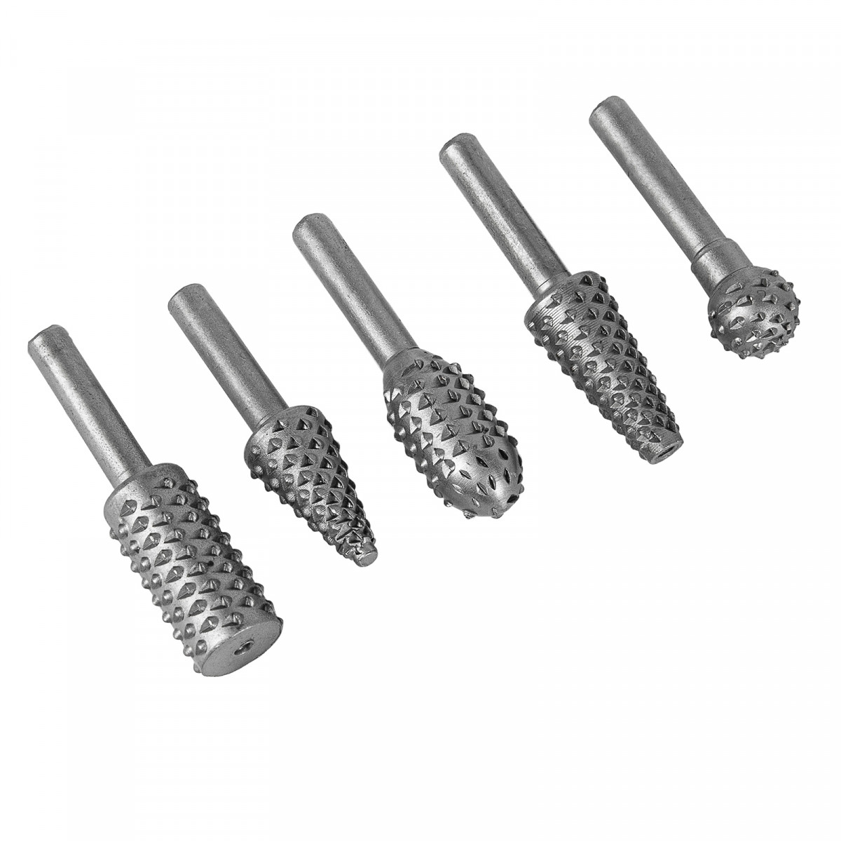 - Набор включает 5 наиболее распространенных шарошек, поэтому с ним можно осуществить большинство видов работ по дереву, фанере и ДСП.