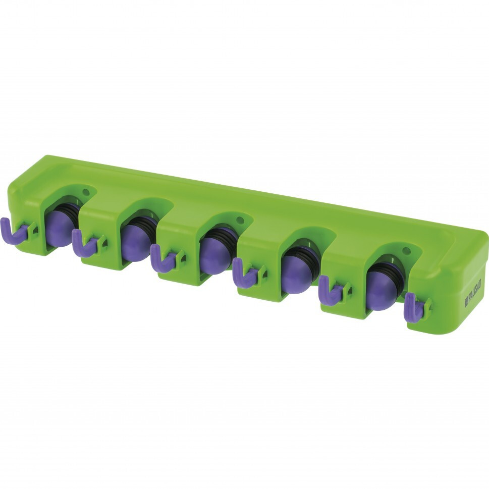 Настенные держатели обеспечат удобное и компактное хранение в доме или на даче. Они позволят разместить несколько предметов садового инструмента без потери рабочего пространства. Навесное хранение способствует удобству уборки подсобного помещения, а также исключает потерю или повреждение инвентаря. Конструкция приспособления позволяет размещать предметы любого типа: грабли, мотыги, мелкий садовый инструмент, хозяйственные мелочи. Крепление инструмента внутри ячейки осуществляется при помощи подвижных само зажимающихся роликов. Обрезиненная поверхность роликов и упоров предохраняет инструмент от выпадения из ячейки. Дополнительные откидывающиеся крючки позволят подвесить веревку, канат или другую бытовую мелочь. Монтаж к стене осуществляется при помощи дюбелей и саморезов.