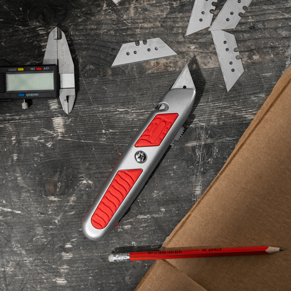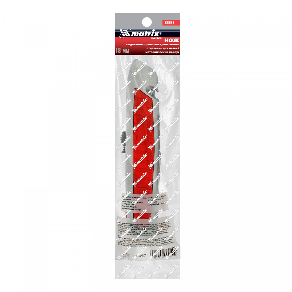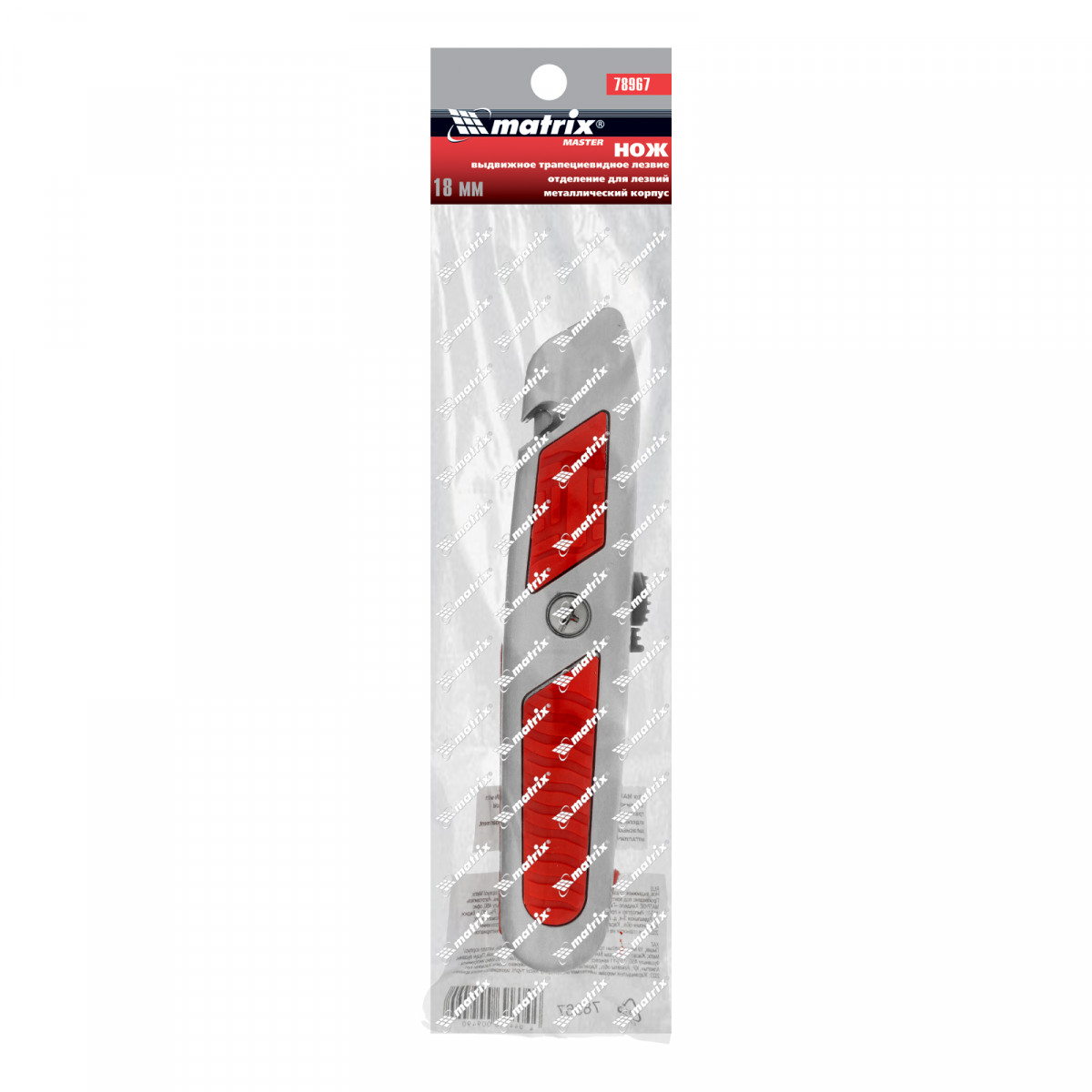 Нож, 19 мм, выдвижное трапециевидное лезвие, отделение для лезвий, метал. корпус Matrix