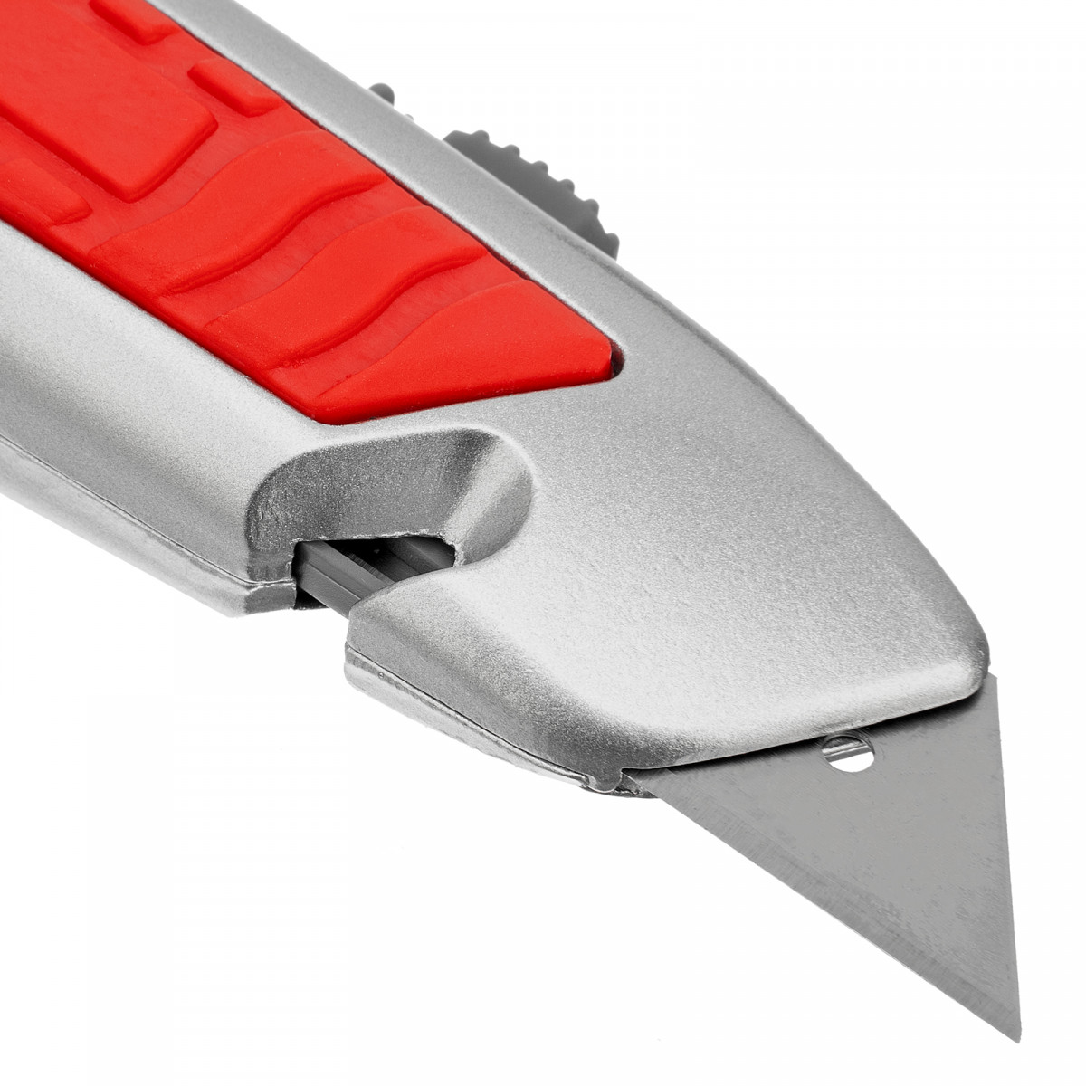 Нож Matrix 78967 с выдвижным трапециевидным лезвием и отделением для лезвий, в металлическом корпусе, режет бумагу, картон, кожу, линолеум и обои. Может применяться в качестве стропореза: для этого в корпусе предусмотрена специальная выемка. Лезвие сменное, артикул совместимых расходников 793555. Металлический корпус выдерживает значительные усилия. Нож будет полезен во время проведения строительных и отделочных работ, а также пригодится в быту.
