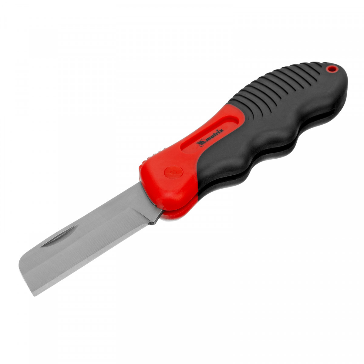 Нож электрика, складной, прямое лезвие, эргономичная двухкомпонентная рукоятка Matrix