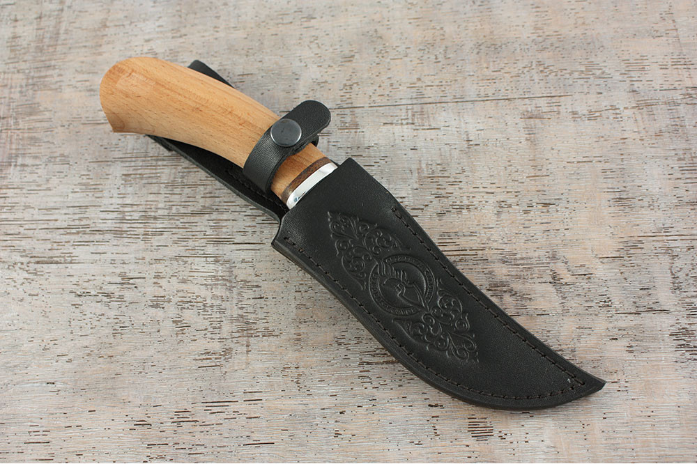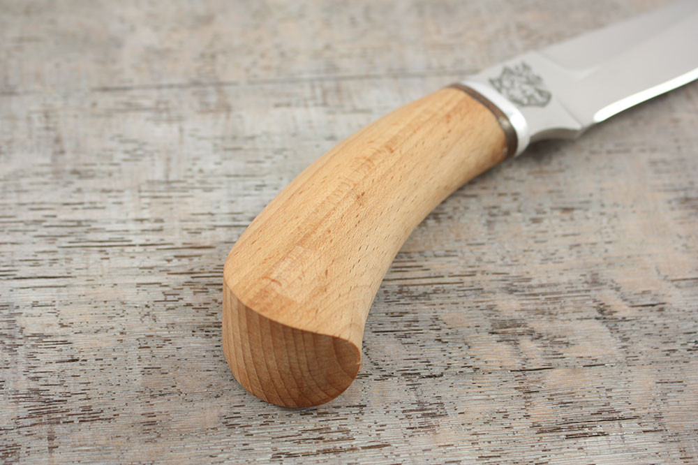 Этот нож поможет охотнику как в разделке пойманного зверя, так и в множестве бытовых работ, таких как обустройство лагеря и приготовление пищи. Нож способен качественно резать и прокалывать острием, этому способствует классическая форма клинка с прямым обухом и наличие фальшлезвия. Гарду в этой модели заменяет небольшой упор в основании клинка, защищающий руку от соскальзывания на лезвие. Хорошие прочностные характеристики ножа говорят о его готовности к выполнению экстремальных задач.
