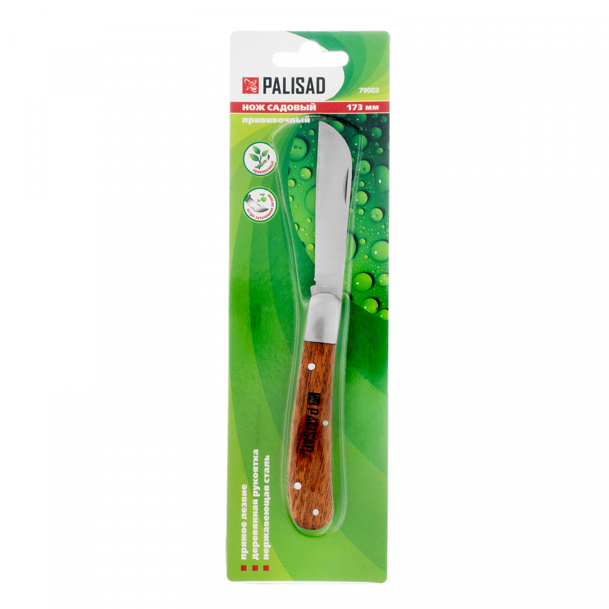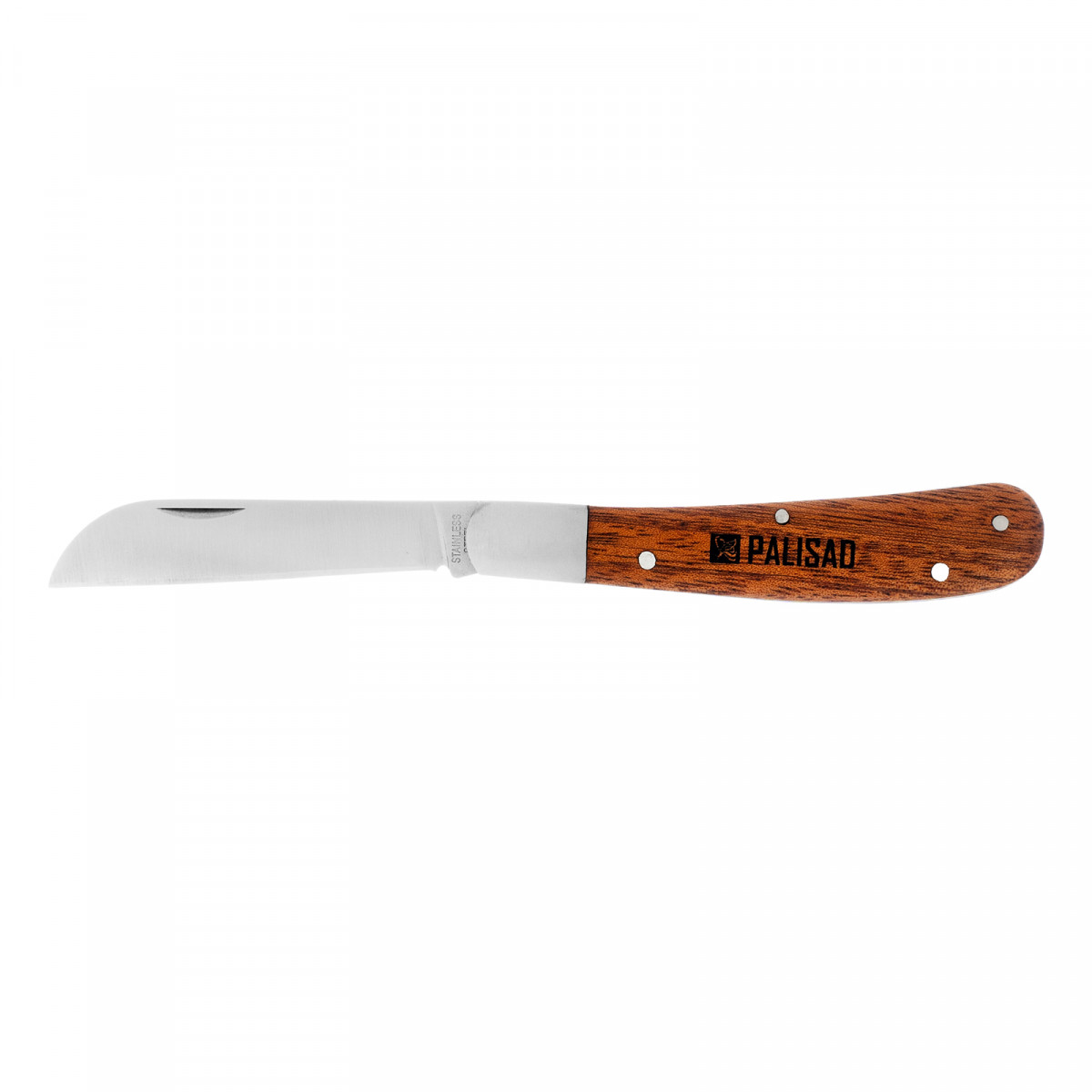 Нож садовый складной, прямое лезвие, 173 мм, деревянная рукоятка, Palisad