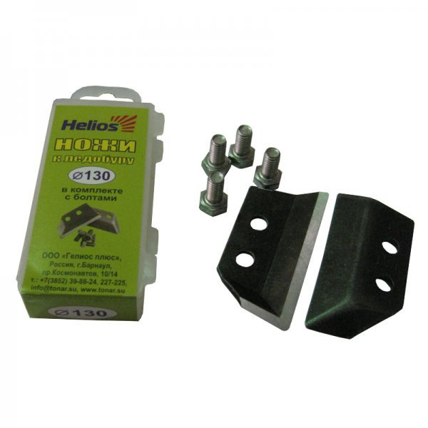 Комплект ножей к ледобуру диаметром 130мм.Преимущества: не откручиваются при бурении, комплектуются болтами.После закалки ножи имеют твердость 55-60 HRC.