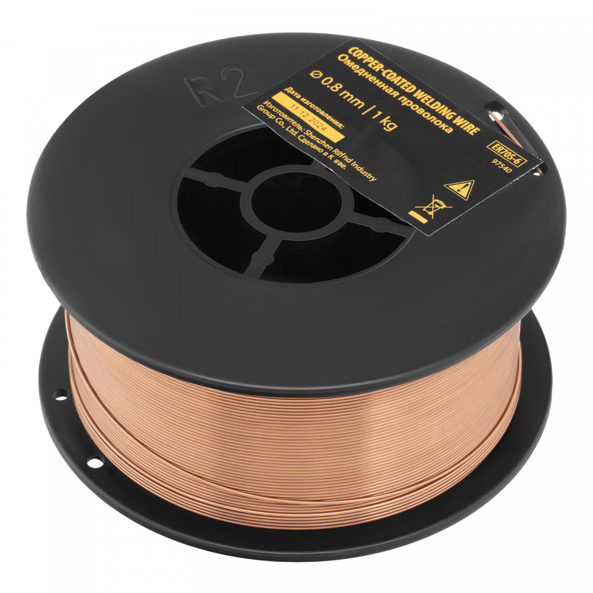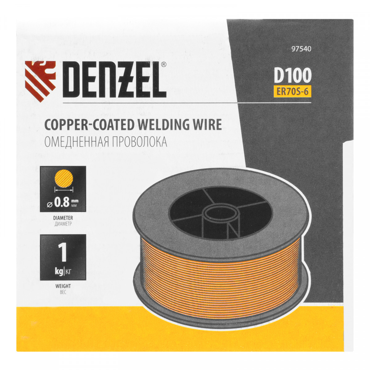 Омедненная проволока ER70S-6, диам. 0,8 мм, 1 кг, диам. катушки D100 Denzel
