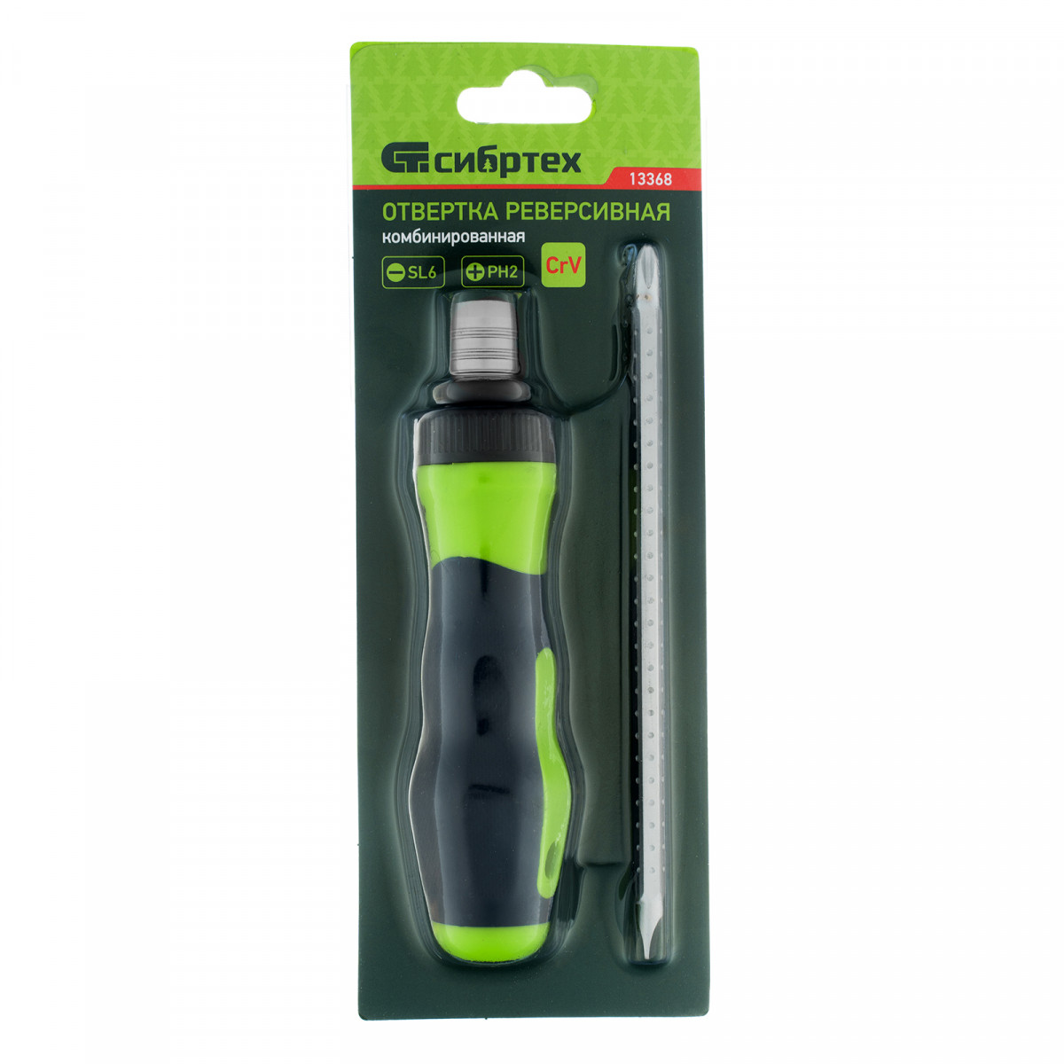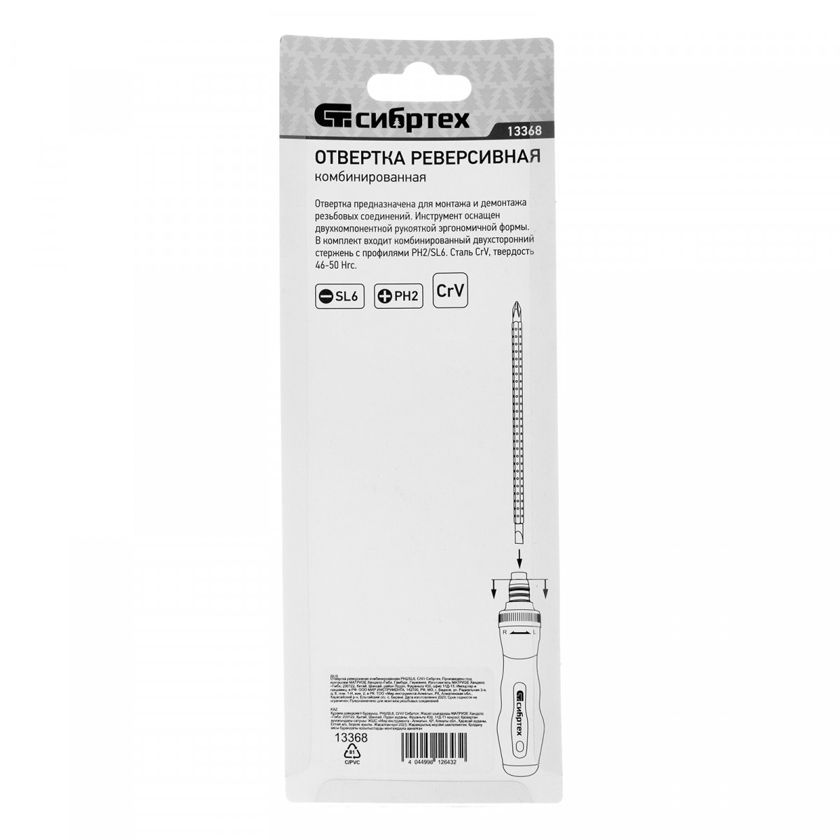 Отвертка реверсивная комбинированная PH2/SL6, CrV Сибртех