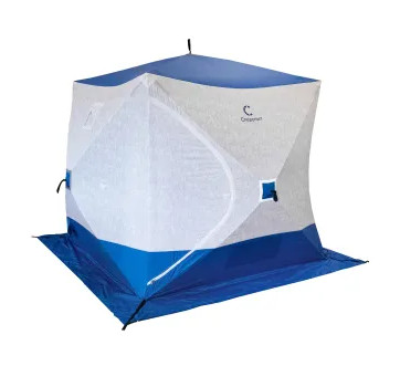 Палатка зимняя куб СЛЕДОПЫТ 2,1 х2,1 м Oxford 210D PU 1000 S по полу 4,4 кв.м синий/белый с принтом