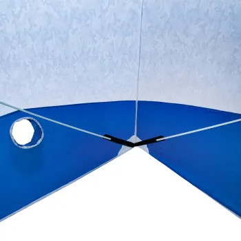Зимняя палатка «Следопыт «Куб» обеспечивает комфорт на рыбалке в зимнее время года. Благодаря системе крепления дуг «хабы» палатки очень быстро переводятся из транспортного положения в рабочее состояние. «Хаб» выполнен из морозостойкого, ударопрочного материала - нейлона (полиамида). Установить палатку можно в течение одной минуты даже одному человеку. Каркас изготовлен из прочного стеклопластикового гладкого прутка d 10 мм. Данная конструкция обеспечивает легкое раскрытие, устойчивость палатки в собранном виде при порывистом ветре. Это позволяет увеличить износостойкость каркаса, даже без использования растяжек. Палатка выполнена из ткани Oxford 210D PU1000, что обеспечивает долговечность, непродуваемость и влагонепроницаемость конструкции. Внутри палатки предусмотрены карманы для хранения рыболовных мелочей. Для хорошего освещения внутреннего пространства в палатку встроены съёмные окна из прозрачной пленки ПВХ 500мк. От снега и солнца на окнах присутствуют внешние козырьки и внутренние откидные шторки.