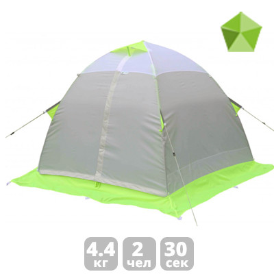 Палатка Лотос 2С зимняя ("С" - стеклокомпозит) - автоматическая палатка для зимней рыбалки, оснащенная стеклокомпозитным каркасом высокой прочности и износостойкости. Геометрические размеры и система раскрытия ЛОТОС 2С полностью идентичны базовой версии палатки ЛОТОС 2. Модели оснащены одинаковыми тентами и различаются только материалами, используемыми в каркасах.