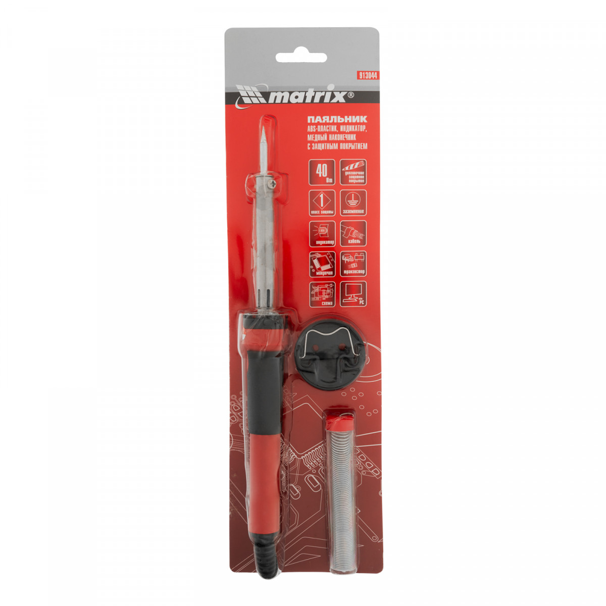 Паяльник, пластик ABS, класс защиты 1, индикатор, медный наконечник с долговечным покрытием, 220 В, 40 W Matrix