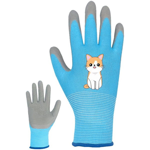 Перчатки нейлоновые Котик с полиур. покр. полуобл., голубые M
