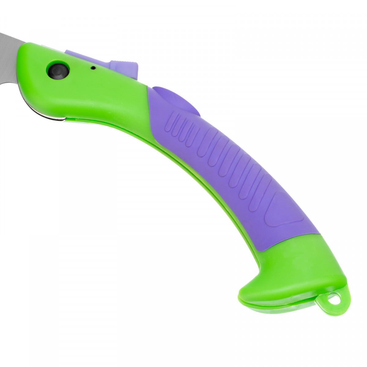 Садовая складная пила Palisad 604145 с рабочей частью длиной 150 мм и пластиковой обрезиненной рукояткой — удобный и компактный инструмент, который будет полезен не только в саду или на строительной площадке, но и в походе. Позволяет обрезать ветки деревьев, выполнять продольный и поперечный рез сухой или сырой древесины. Зубья с трехгранной заточкой обеспечивают эффективную работу при минимальных усилиях со стороны пользователя.