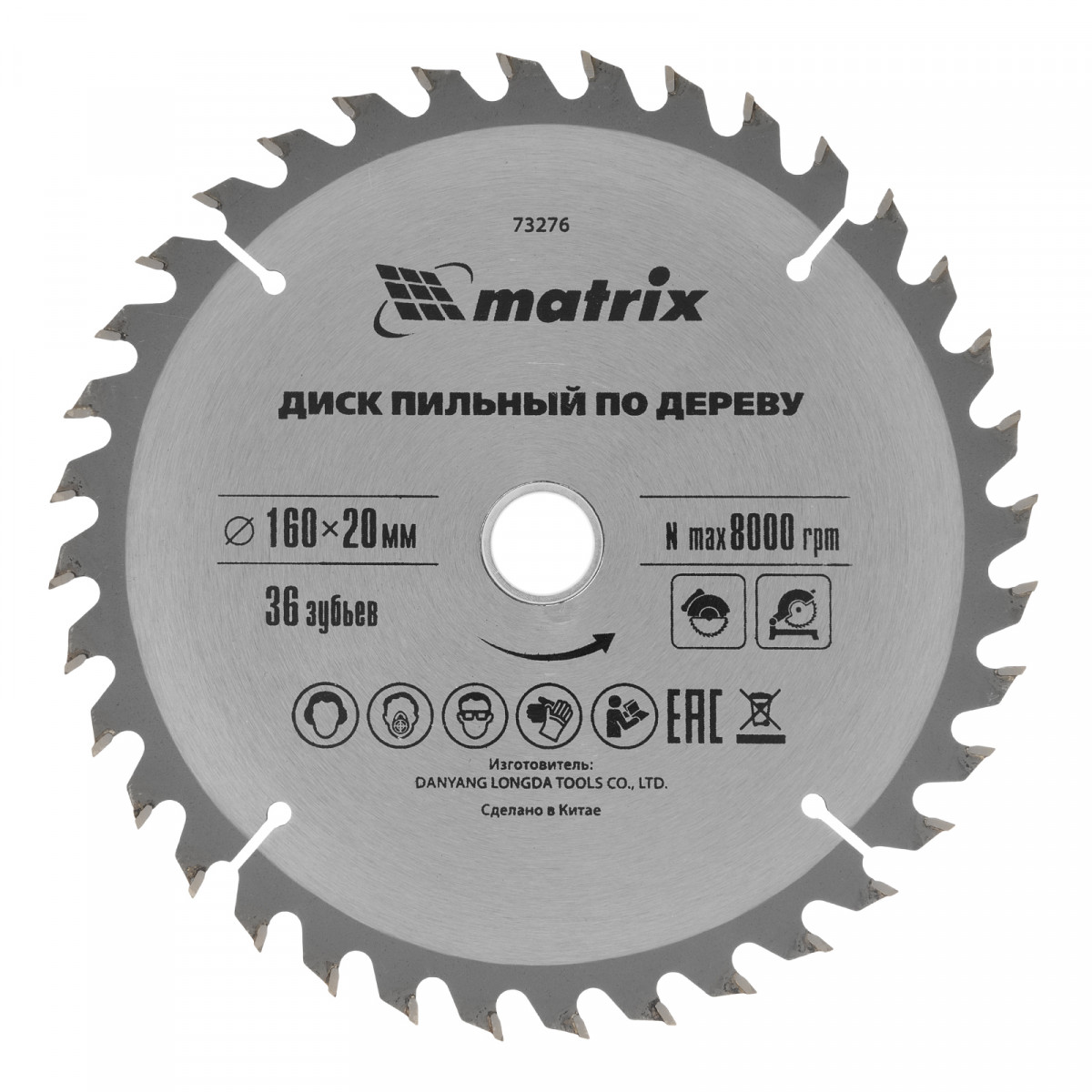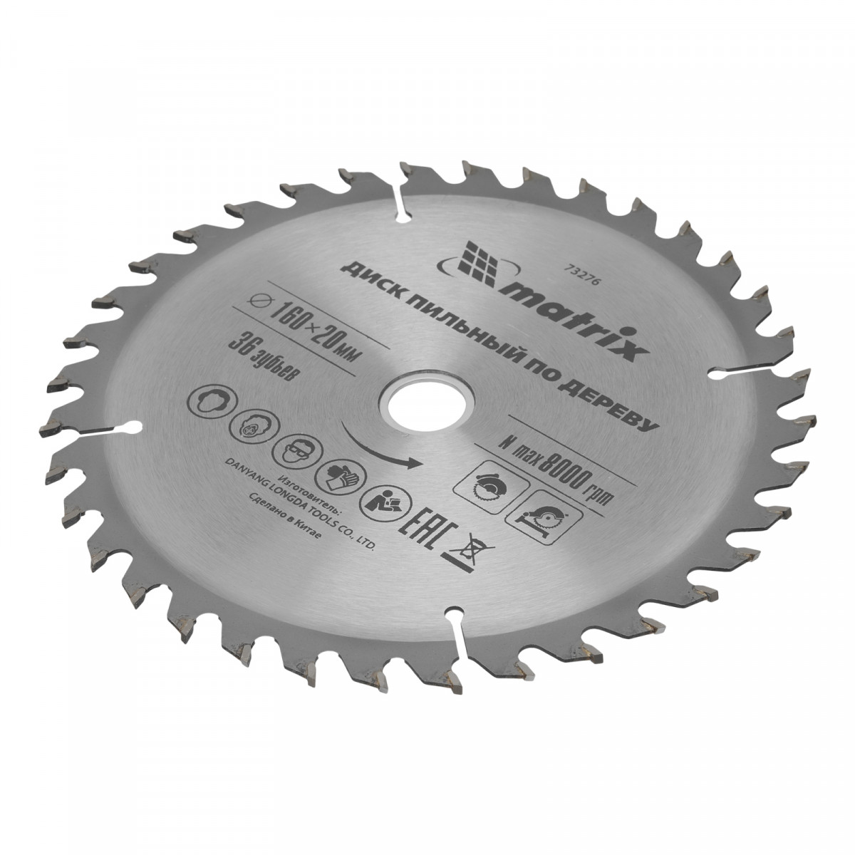 Пильный диск по дереву, 160 х 20 мм, 36 зубьев, кольцо 16/20 Matrix Professional