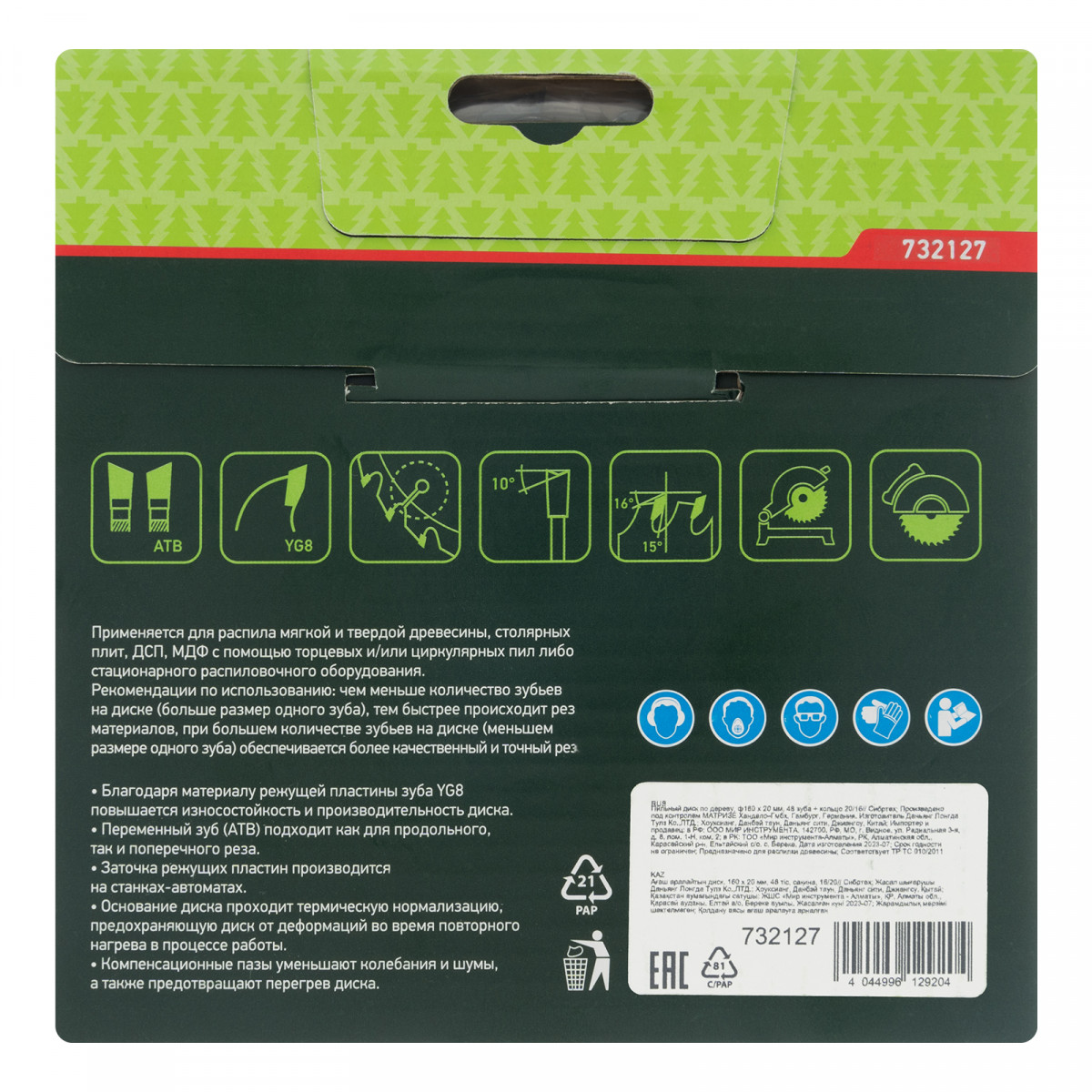 - Качественный рез — 48 зубьев типа АТВ с попеременной заточкой позволяют использовать диск для точного поперечного распила материалов и получения чистых кромок