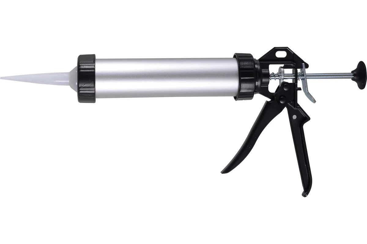 Пистолет для герметика используется при строительных и ремонтных работах. Устройство инструмента позволяет выдавить герметик из тубы и нанести его для фиксации, изоляции и заполнения пустот при монтаже ванн, дверей, окон, раковин, кровли и др.Модель алюминиевого «закрытого» пистолета имеет цилиндрический корпус, который позволяет работать как с картриджем, так и с тубой.