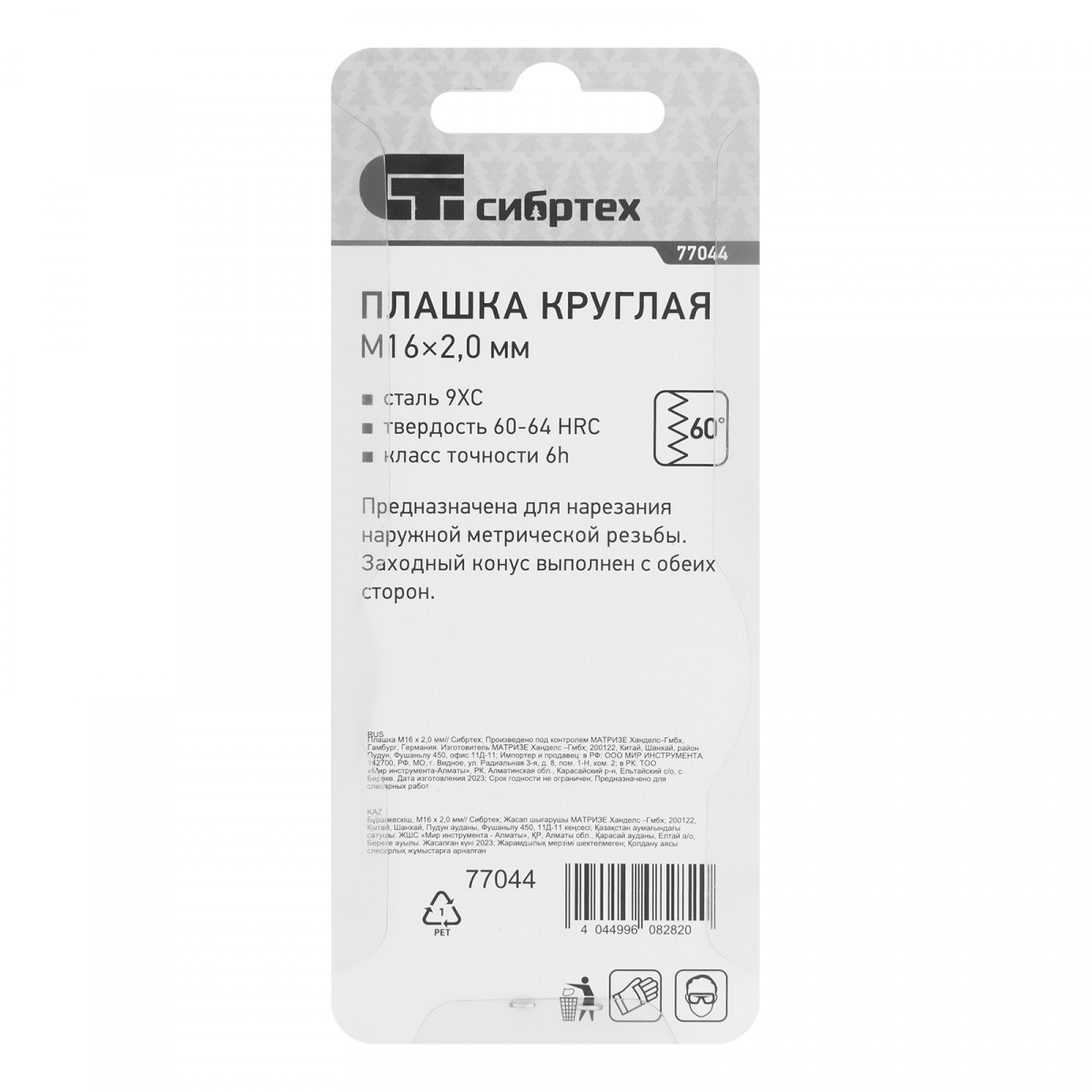 Плашка М16 х 2 мм Сибртех
