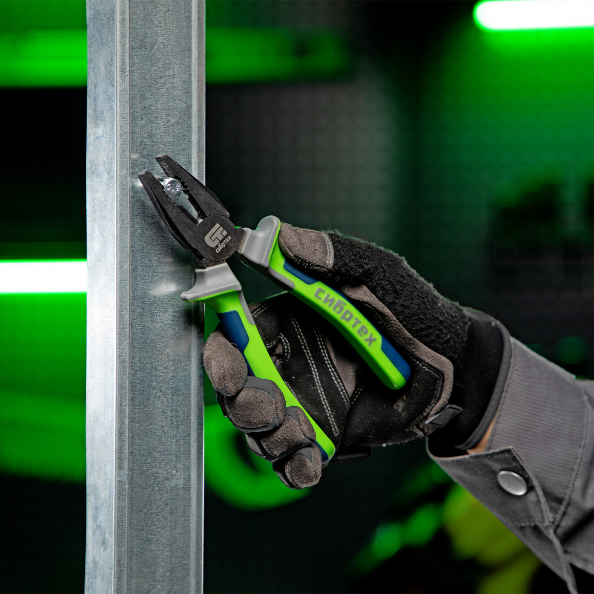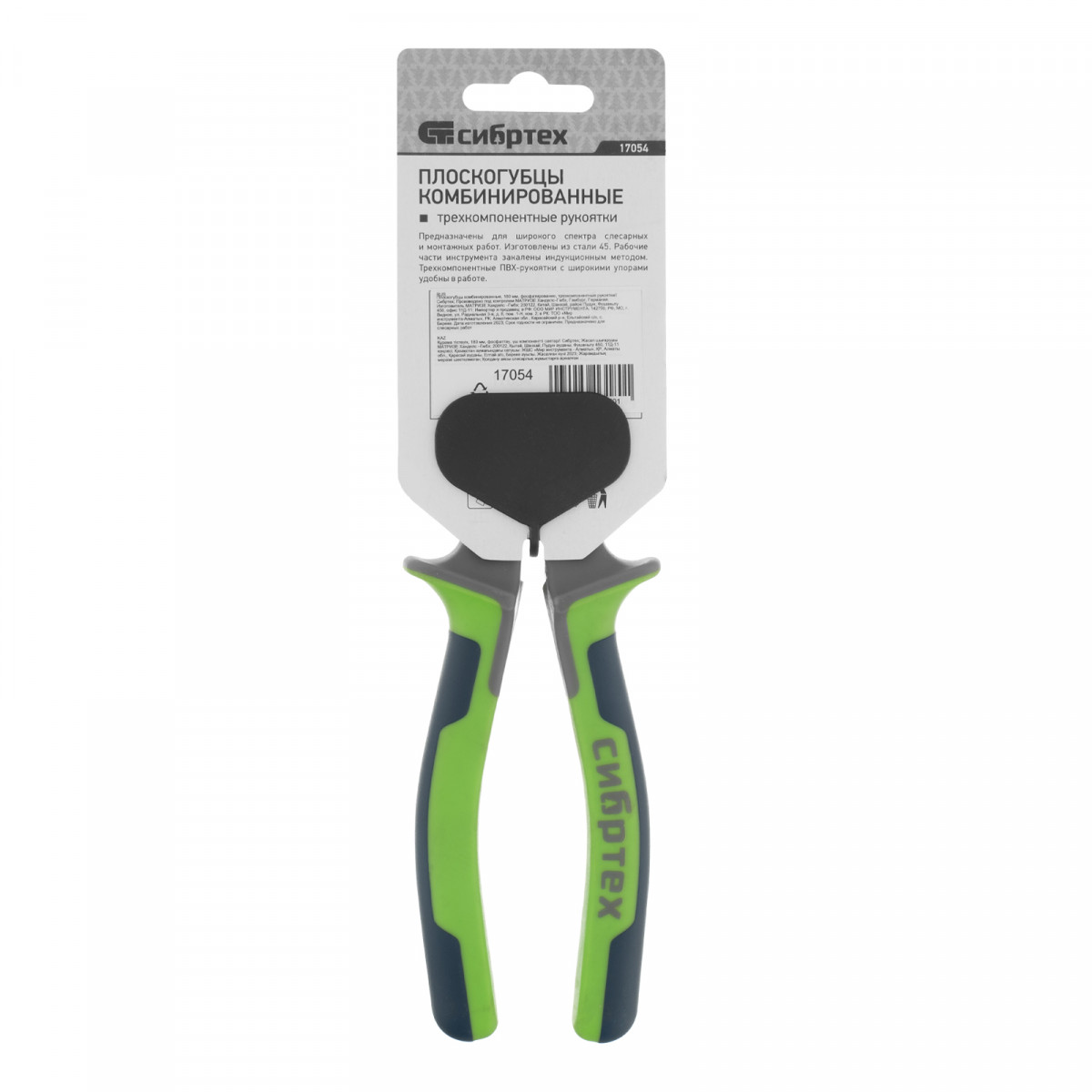 Плоскогубцы комбинированные, 180 мм, фосфатирование, трехкомпонентные рукоятки Сибртех