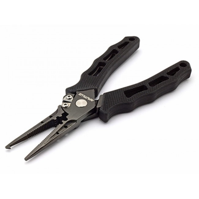 Плоскогубцы, пожалуй, самый универсальный и востребованный сегмент инструмента. Разжим колец, обжим трубок при монтаже поводков, кусачки, использование в качестве корцанга – вот далеко не полный перечень возможностей. Многофункциональные плоскогубцы из нержавеющей стали с финишным титановым покрытием. Рукояти инструмента выполнены из литого TPR-пластика, не скользящего даже в мокрых руках.
