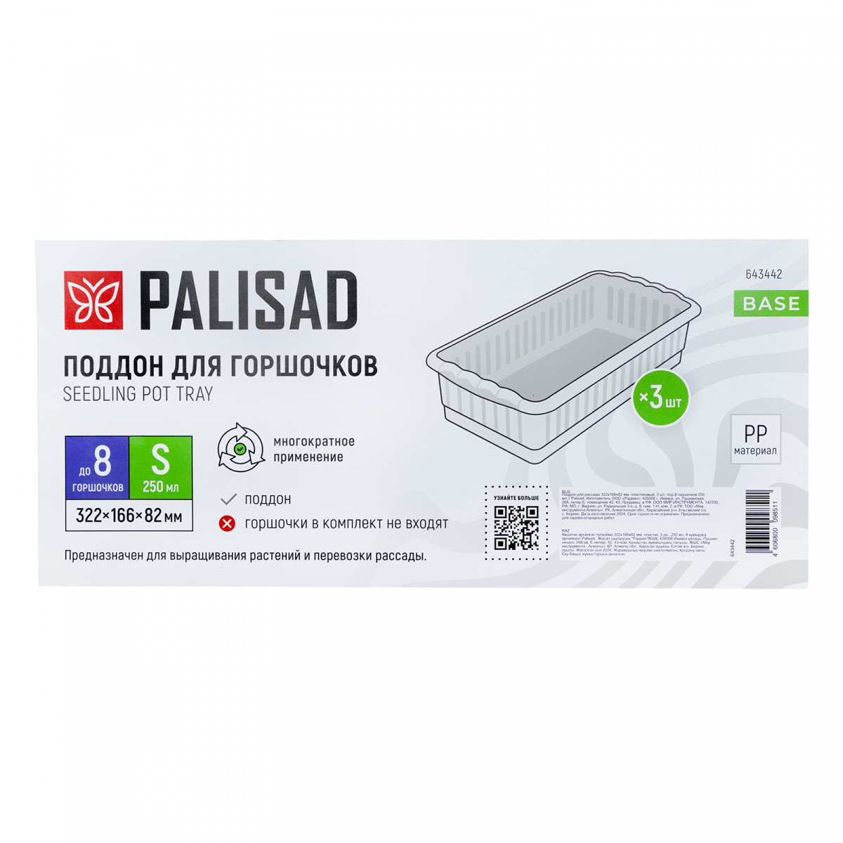 Поддон для рассады 322х166х82 мм, пластиковый, 3 шт, под 8 горшочков 250 мл. Palisad