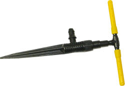 Поливочное устройство "Вертолет" устанавливается либо в землю, либо на пику для больше захвата площади полива. Вам не нужно будет ходить по огороду и таскать за собой шланг, "Вертолет" со всем справится сам, нужно будет лишь включить насос и время от времени переставлять поливочное устройство с места на место.