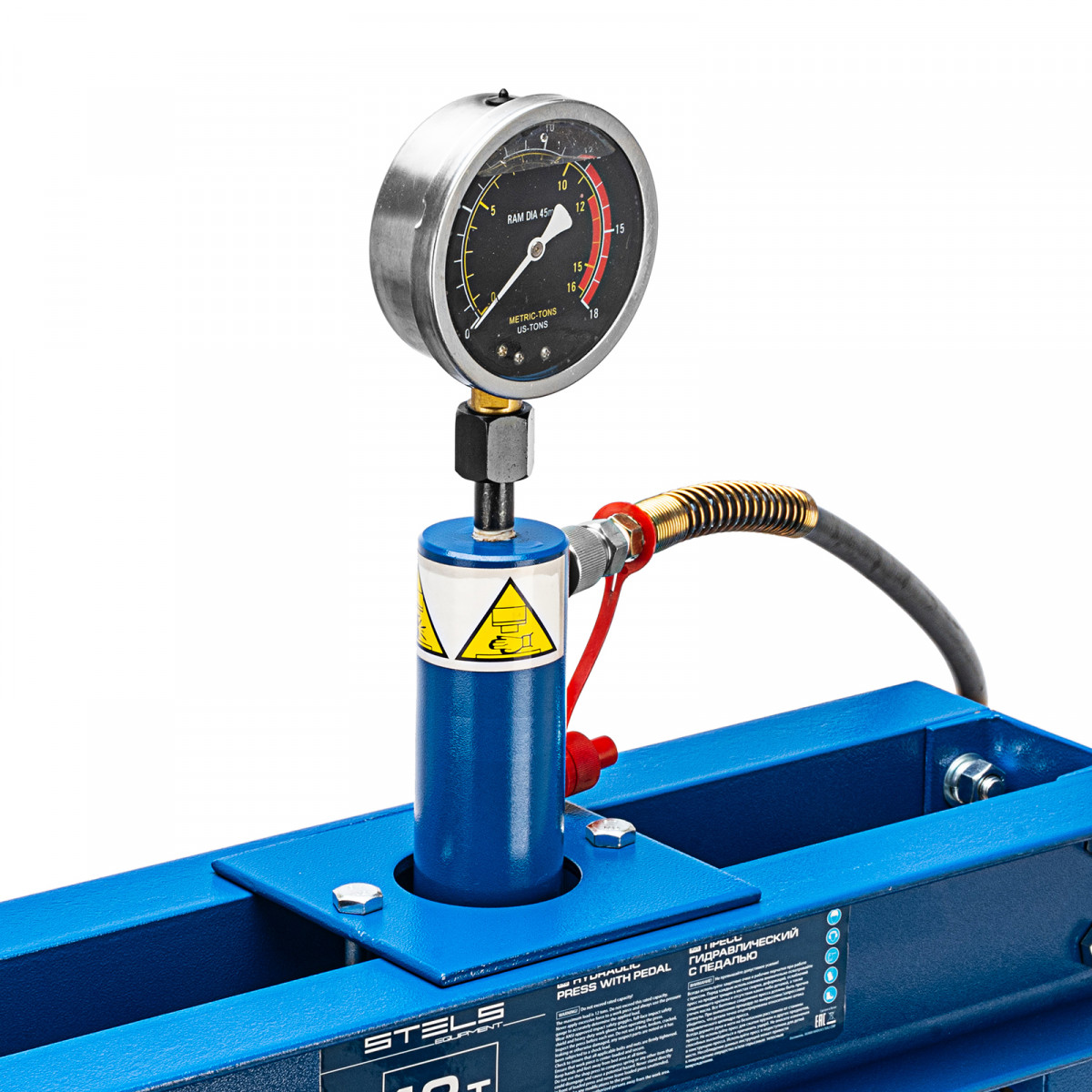 Пресс гидравлический с манометром и педалью, 12 т (комплект из 2 частей) Stels
