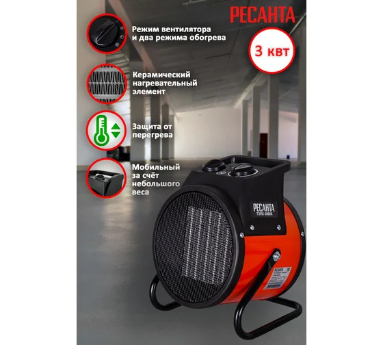 Пушка тепловая РЕСАНТА ТЭПК-3000 керамический нагревательный элемент круглая