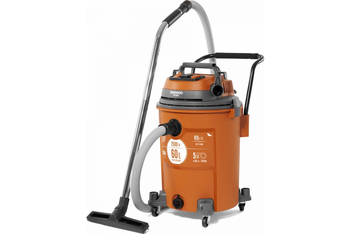 Промышленный пылесос Daewoo DAVC 6025S предназначен для очистки помещений во время строительных работ.Корпус из ударопрочного пластика c ребрами жесткости устойчив к коррозии и механическим воздействиям.2-ва режима включения турбин позволяет работать в режиме экономии или на максимальной мощности 2500Вт сразу двумя турбинами.Шланг длиной 5 метра и диаметром 38 мм позволяют собирать большой объем мусора в самых труднодоступных местах.Оснащен двойной системой фильтрации. В комплекте фильтр предварительной очистки и второй фильтр HEPA для сбора самых мелких частиц пыли.Встроенная розетка позволяет подключать электроинструмент и работать пылесосу в автоматическом режиме.Уникальная насадка для прочистки засоров позволит быстро удалить засоры в сливах раковин, ванн и душевых кабин.Наличие сливного отверстия позволяет удалить жидкость не переворачивая наполненный пылесос.Работает в 3-х режимах:всасывание сухого строительного и бытового мусора