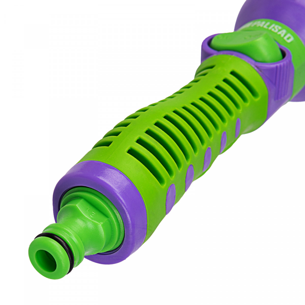 Распылитель Palisad 651875 с 8 режимами устанавливается на шланг и используется для ручного распрыскивания воды. С его помощью можно легко и быстро полить огород, сад, газон, помыть дорожки, очистить инвентарь и т.д. Современная конструкция устройства позволяет использовать его для решения бытовых и профессиональных задач на придомовой территории, в саду, в парке.