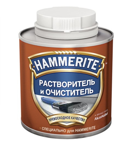 Растворитель Хаммерайт может применяться в качестве очистителя поверхности перед окрашиванием, а также для чистки малярных инструментов и удаления с загрязненной поверхности пятен масла, жира, краски. Растворитель и очиститель Hammerite не подходит для использования с водорастворимыми красками.