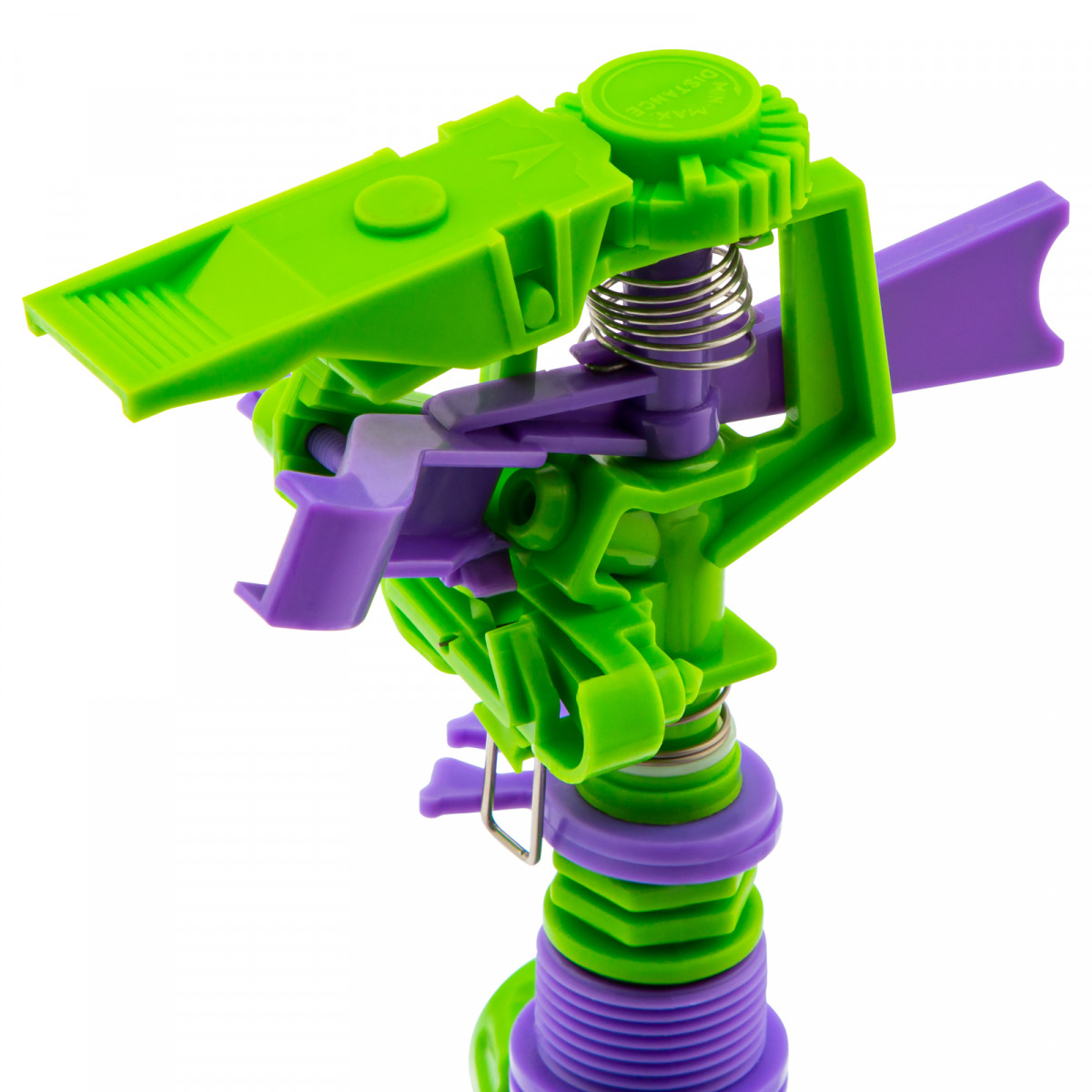 - Механизм регулировки угла распыления позволяет проводить полив участка по секторам.