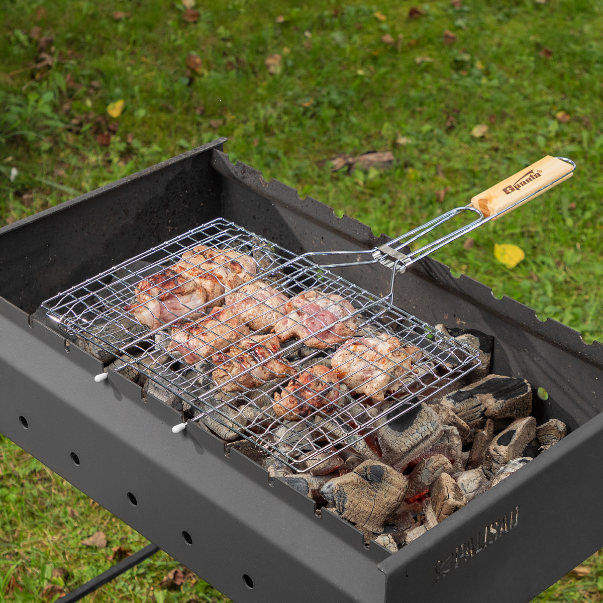 - Решетка имеет увеличенные опорные стержни, благодаря чему она надежно фиксируется на мангале, а рабочая поверхность при этом используется полностью.