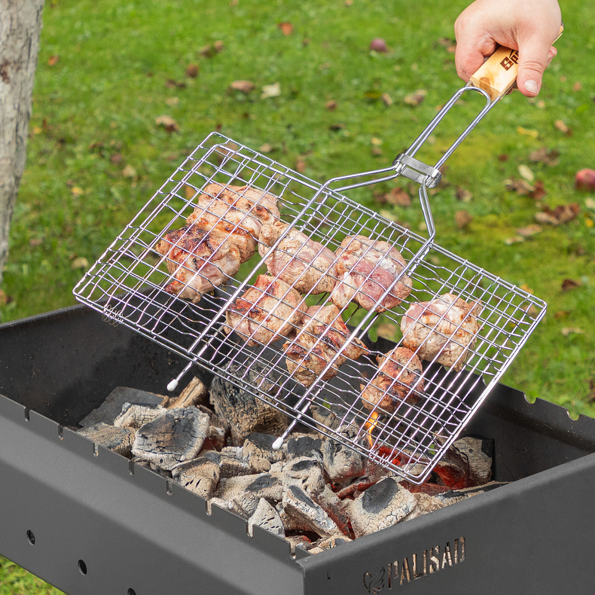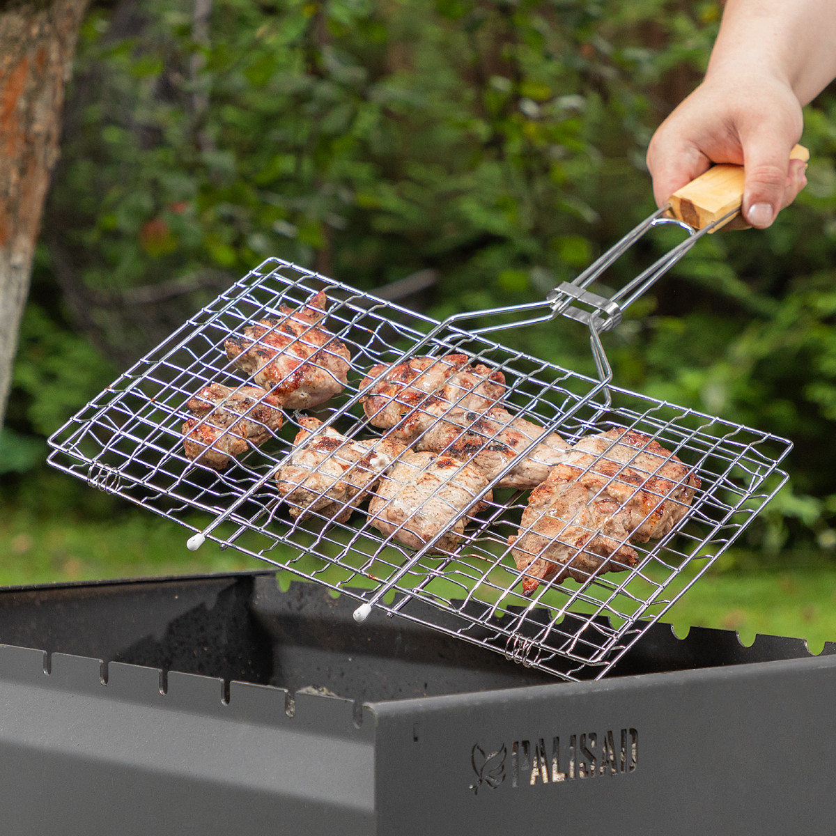 - Рукоятка из поливинилхлорида (PVC) не скользит в руках, почти не нагревается при контакте с горячими поверхностями и не утяжеляет конструкцию решетки.