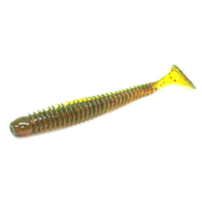 Прогонистый виброхвост-червь  очень популярной формы. Тело максимально эластичное, легкая хвостовая лопатка приходит в движение от едва уловимых потяжек удилищем. Отлично сочетается с офсетным крючком, не препятствуя надежной подсечке.  Многочисленные ребрышки на тельце создают привлекающий рыбу гидроакустический эффек­­­­т. Очень хорошо работает в стоячей воде, на медленном и среднем течении. Допускает оснащение очень легкими грузилами, а также отлично ловит в легкой прибрежной и травяной ловле вообще без огрузки. Вызывает интерес не только у классических хищников наших вод, но и регулярно приносит поимки крупной мирной рыбы – леща, сазана. Представлена в размере 4 дюйма (10 см.)