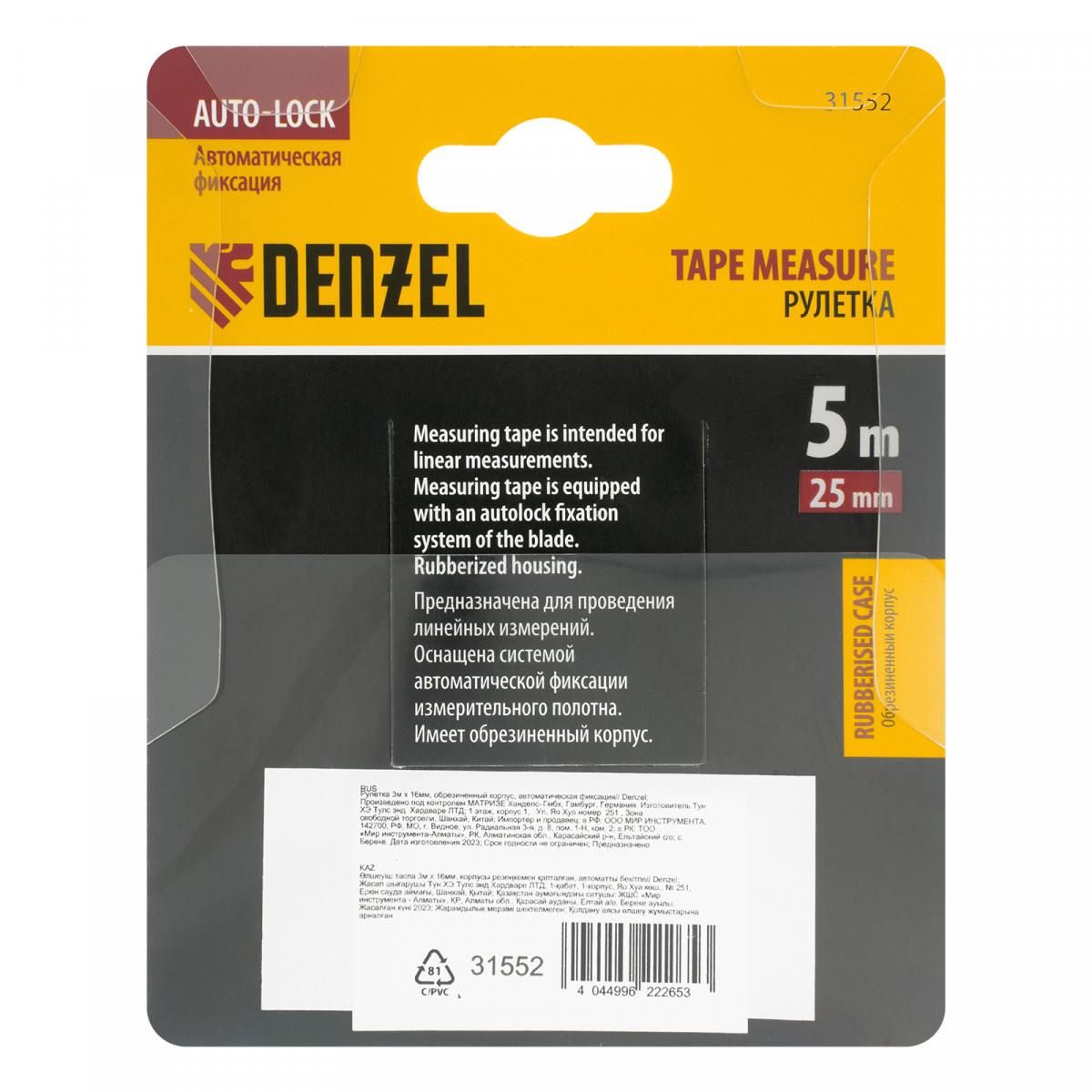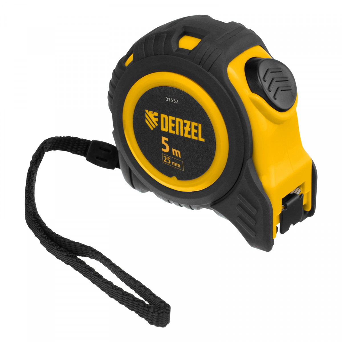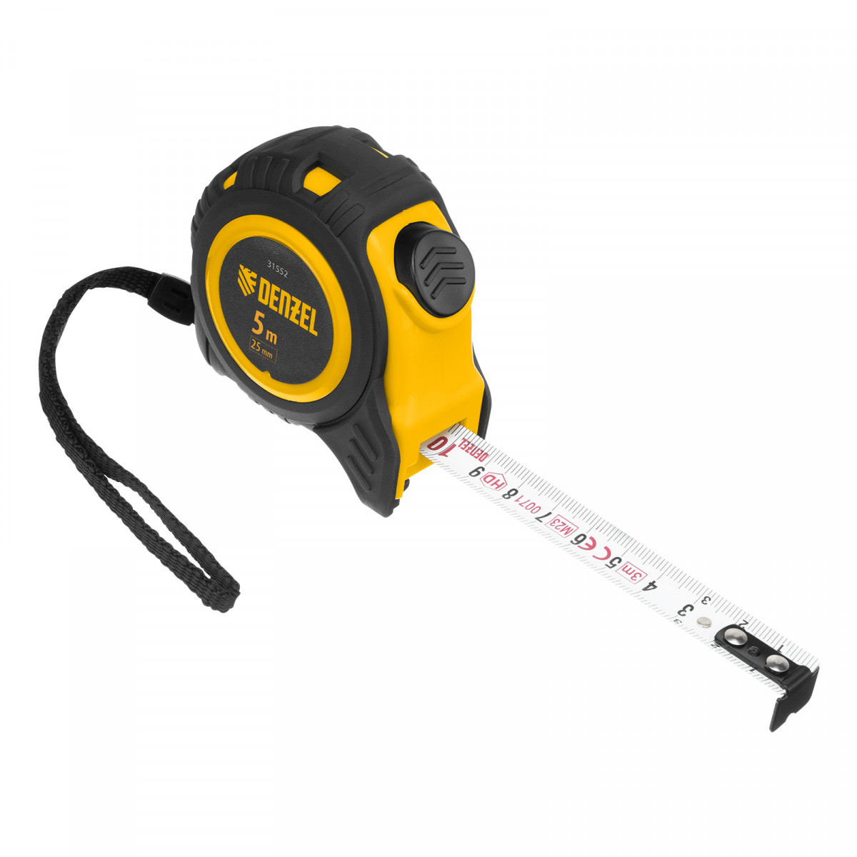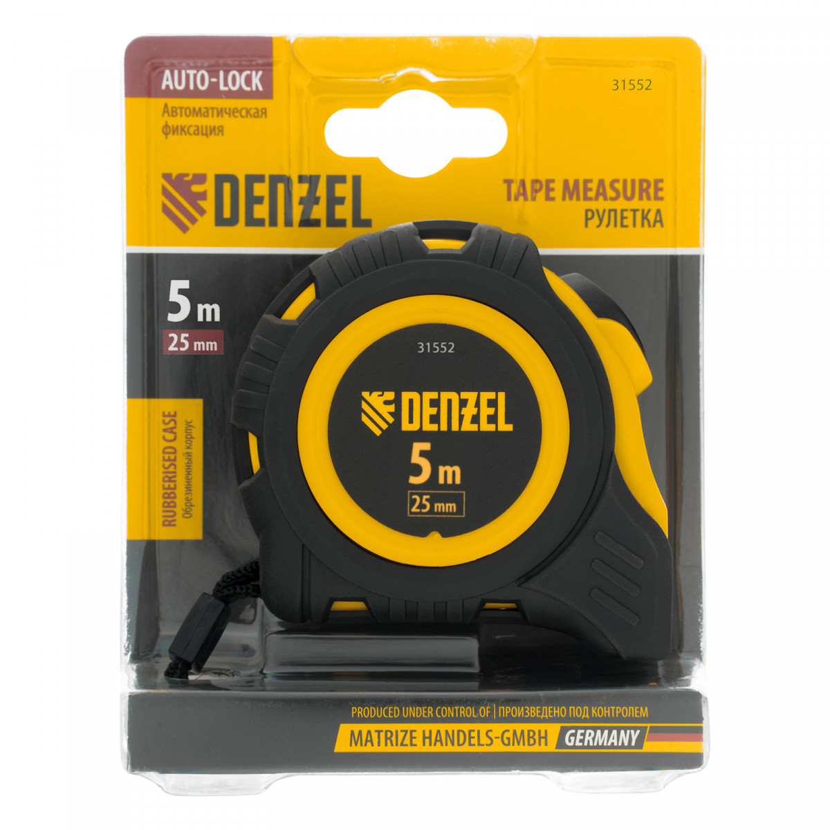 Рулетка 5м х 25мм, обрезиненный корпус, автоматическая фиксация Denzel