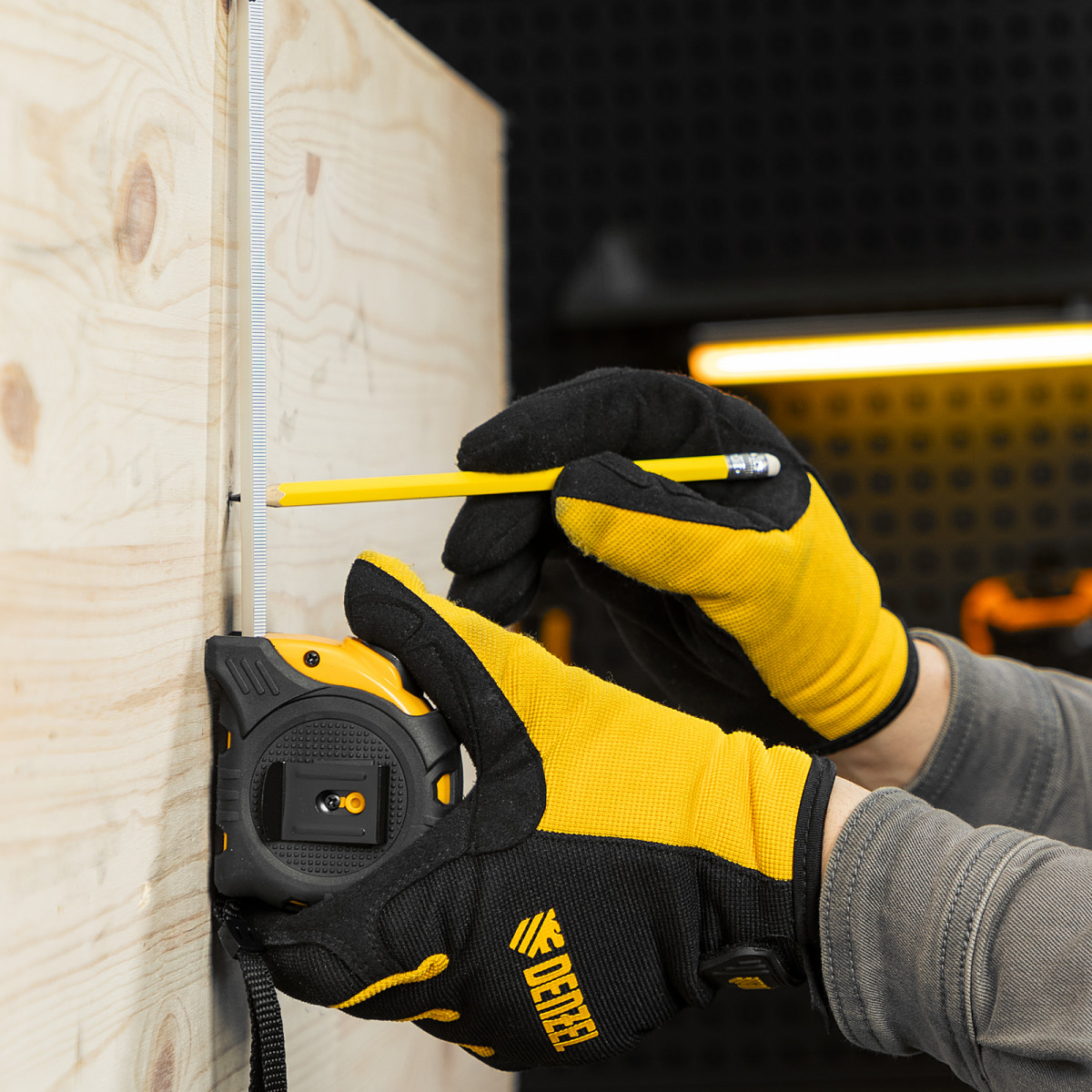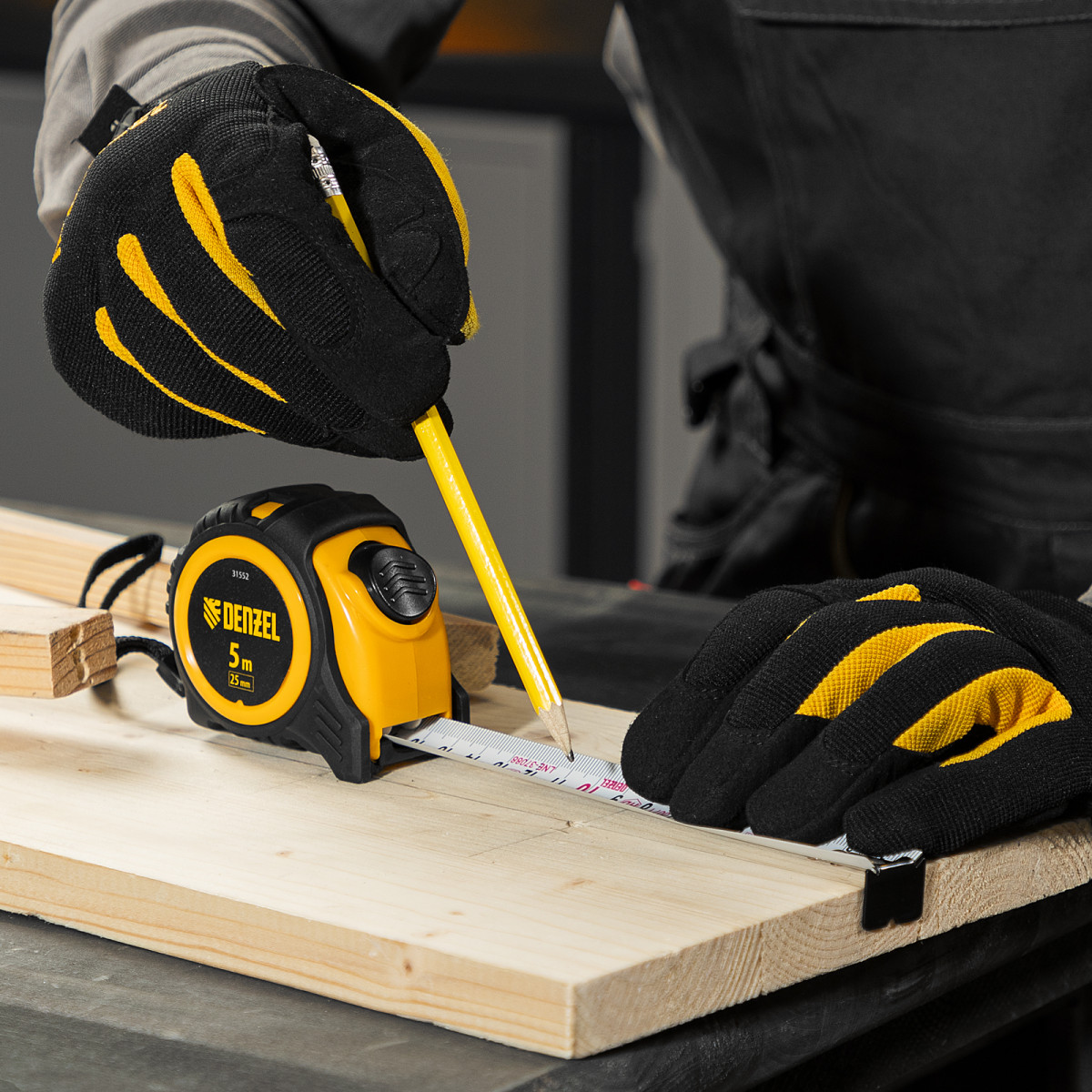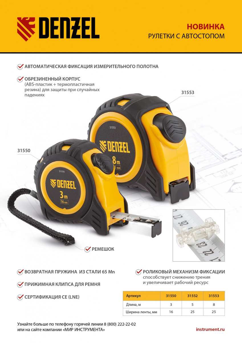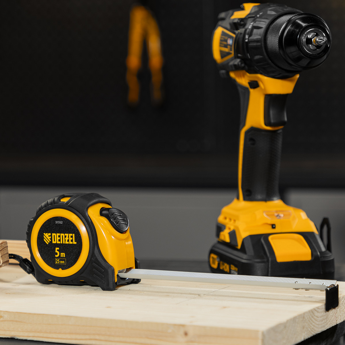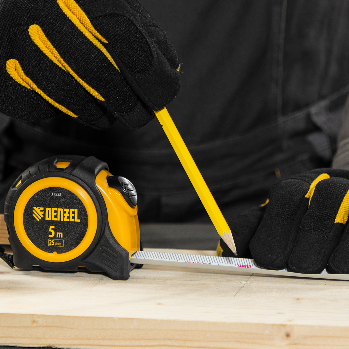 Рулетка 5м х 25мм, обрезиненный корпус, автоматическая фиксация Denzel