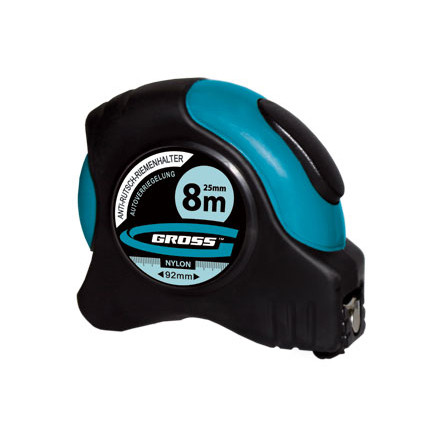 Рулетка 8 м*25 мм двухсторонняя шкала, нейлоновое покрытие Schlagfest GROSS