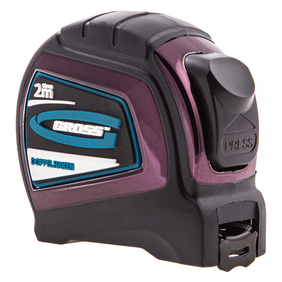 Автоматическая рулетка Gross «Doppelhaken» 31121 с односторонним зацепом, лентой размером 2 м x 16 мм, с двухсторонней шкалой и нейлоновым покрытием, предназначена для проведения измерений стен, полов, различных материалов и конструкций. Пригодится на строительной площадке и в быту.