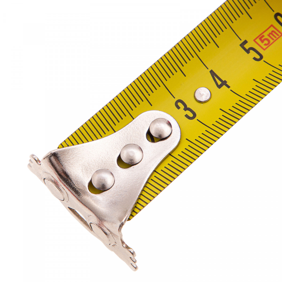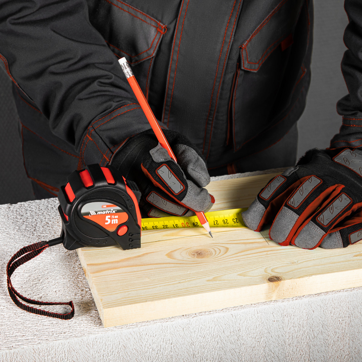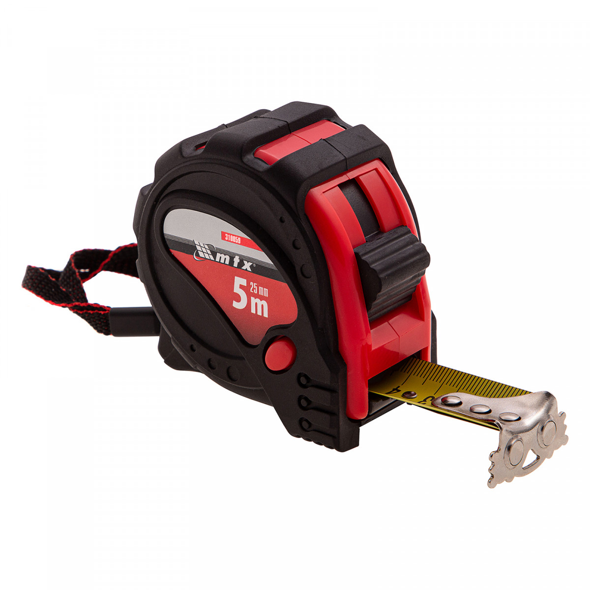 Рулетка Matrix Status magnet 3 fixations 31005 с полотном длиной 5 м и шириной 25 мм, в обрезиненном корпусе, оснащенная зацепом с магнитом, предназначена для измерения различных объектов и расстояний. Имеет класс точности 2 и цену деления 1 мм, что обеспечивает достаточную результативность замеров. Магнитный зацеп позволяет четко фиксировать измерительное полотно на металлических предметах. Стальная лента шириной 25 мм обладает большой упругостью, что облегчает работу в труднодоступных местах. Рулетка будет полезна при проведении строительных работ, а также пригодится в быту.